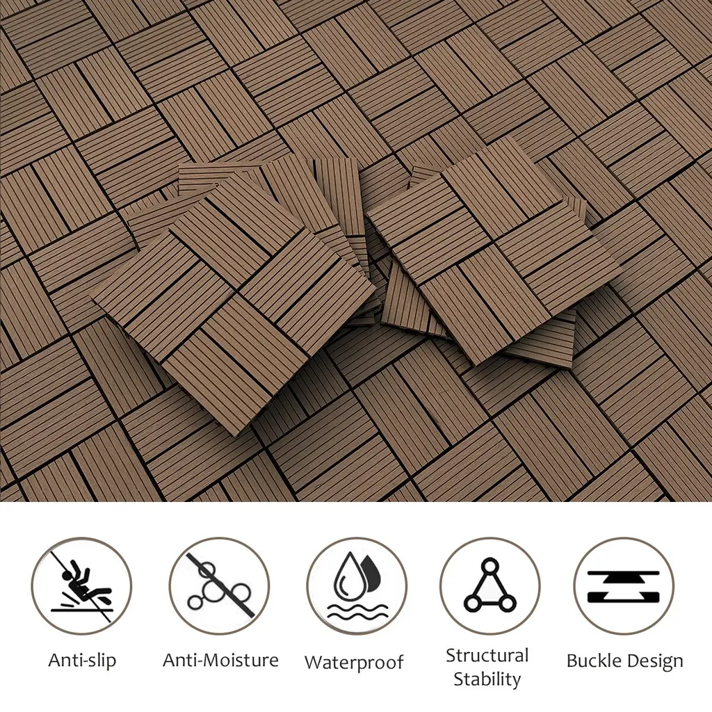 Wood Plastic Composite Deck Tiles Set Of 20pcs, Diy Interlocking, Water-Resistant Flooring For Indoor & Outdoor, 12x12in - Light Coffee
