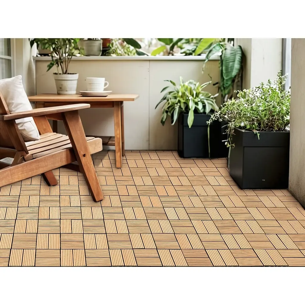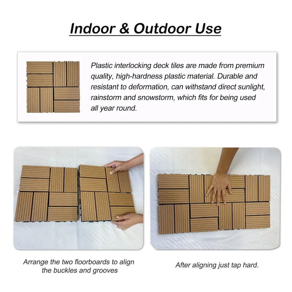 Wood Plastic Composite Deck Tiles Set Of 20pcs, Diy Interlocking, Water-Resistant Flooring For Indoor & Outdoor, 12x12in - Wood