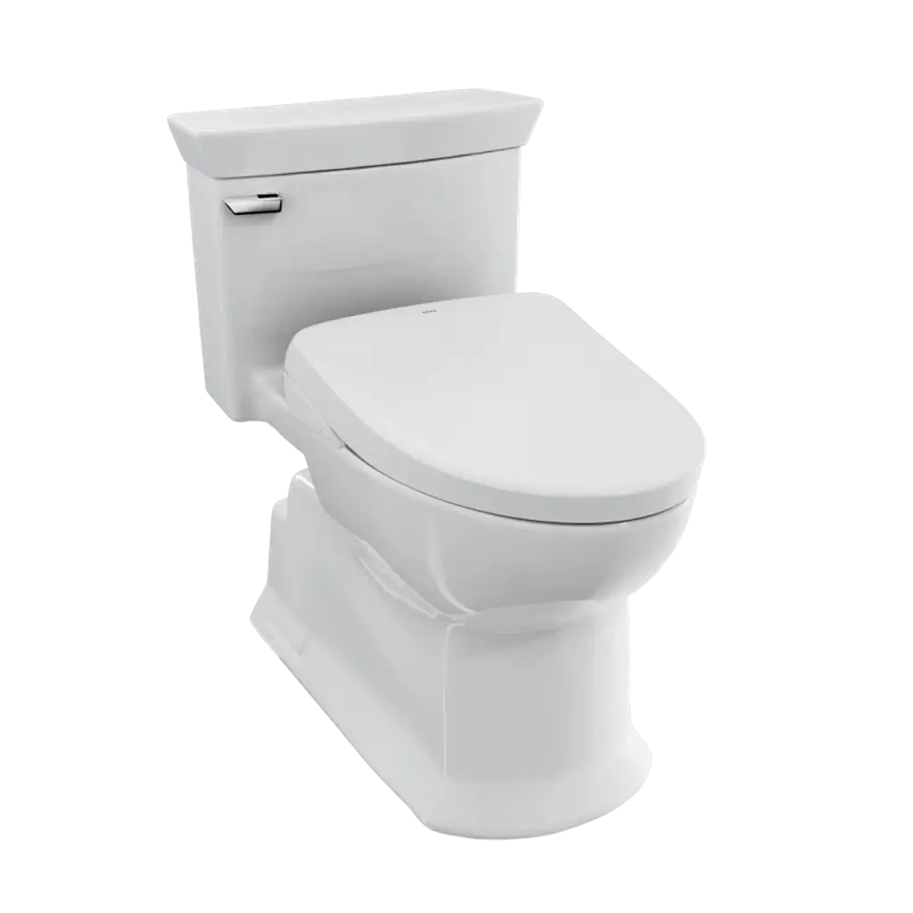 The toilet features a technologically advanced ewater+ system that uses electrolyzed water generated by a technologically advanced process, transforming the water into a safe and powerful compound. By misting the bowl after every use and cleaning the wand, ewater+ technology helps to keep your toilet bowl clean and hygienic without any extra harsh chemicals. Premise function sprays the bowl with water before each use, preventing waste buildup and keeping the toilet bowl clean. The toilet is fully automated, including an illuminated remote control with 5 spray settings, auto open and close lid, heated seat, and instantaneous water heating. The toilet features a tornado flush, a hole-free rim design with dual nozzles that creates a centrifugal washing action that assists in rinsing the bowl more efficiently. This version of the toilet includes Cefiontect, a layer of exceptionally smooth glaze that prevents particles from adhering to the ceramic. This feature, coupled with the washlet premise and tornado flush, assists to reduce the frequency of toilet cleanings, minimizing the usage of water, harsh chemicals, and time required for cleaning. The new auto flush kit provides a hands-free automatic flush after every use. No need to touch buttons or handles, and never worry about someone forgetting to flush. Allows for a more comfortable seat position across a wide range of users.