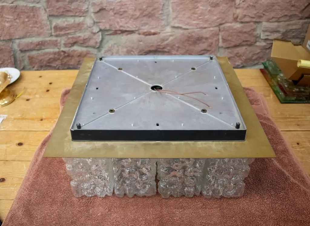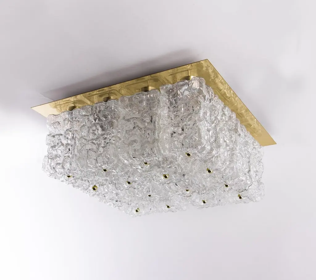 1 'Of 2' 1960 Germany Limburg Large Square Flush Mount Glass & Brass Chandelier