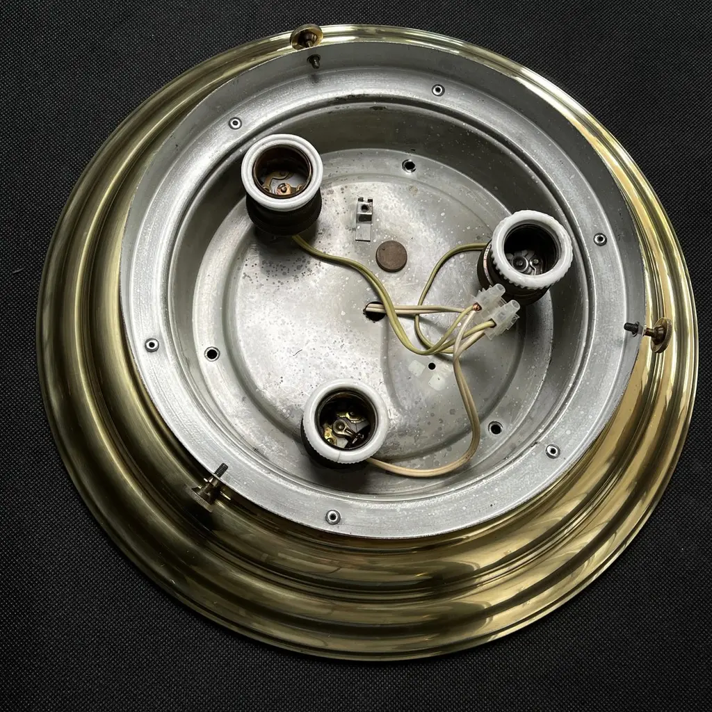 ART DECO Flush Mount Brass PlafoniereThis original ceiling lamp captivates with its simple and matter-of-fact Art Deco design. The lamp gives a very pleasant light. This ceiling lamp is an absolute design classic from the ART DECOS period.The lamp has 2xE27 socket and weights 2.1 kg / 4.63 lbs.