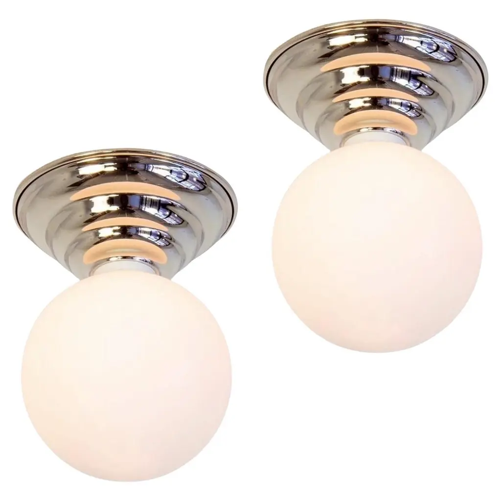 1 Of 2 Art Deco Flush Mount Brass Plafoniere Ceiling Lamp, Lamp, Circa 1930