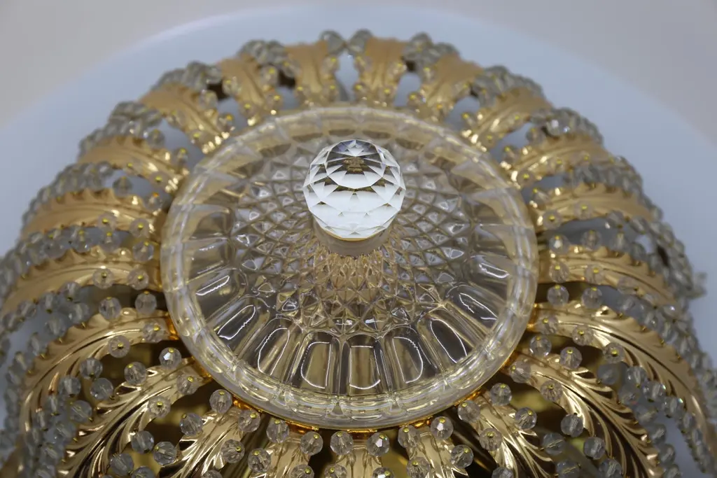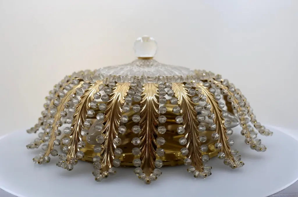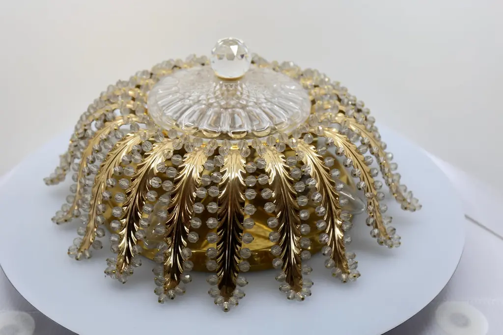 1 Of 2 Brass And Crystal Glass Bead Palm Leave Flush Mount