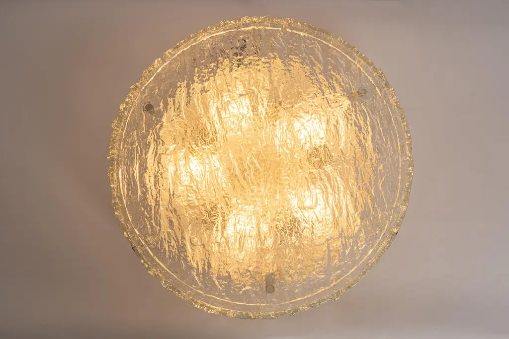 1 Of 2 Extra Large Murano Glass Flushmount Fixture By Kaiser, Germany, 1960s