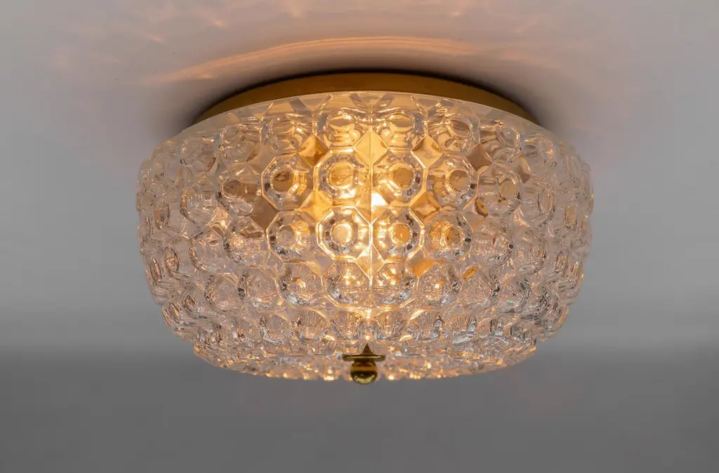 1 of 2 Huge Flush Mount Lamp in Glass by Limburg, Gerrmany 1960sWe have four different sizes of the same model with 4 pieces per size which can also be found here on the platform.The fixture need 1 x E27 standard bulb.Light bulbs are not included.It is possible to install this fixture in all countries (US, Australia, Asia, UK, Europe,..)