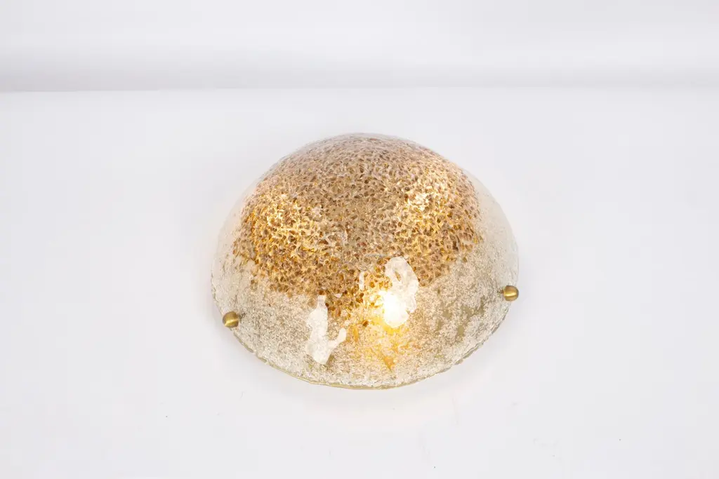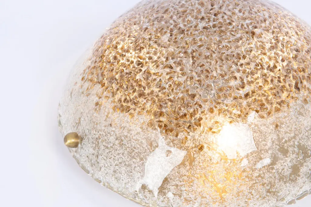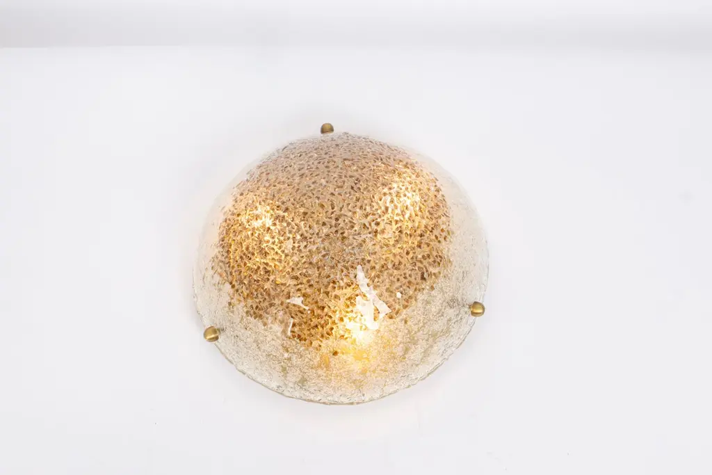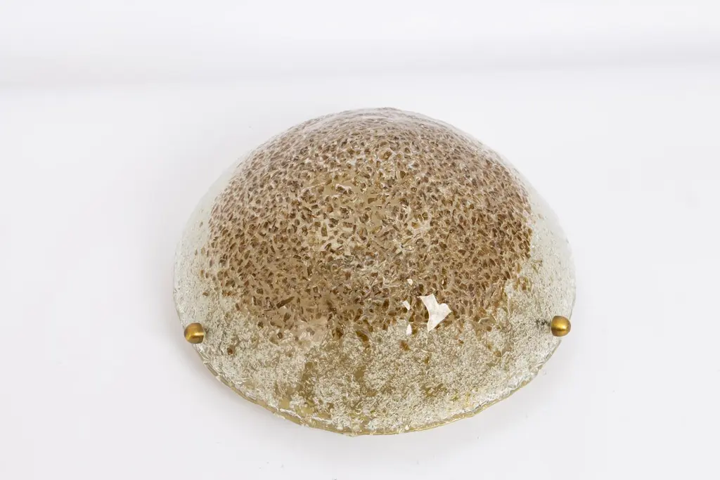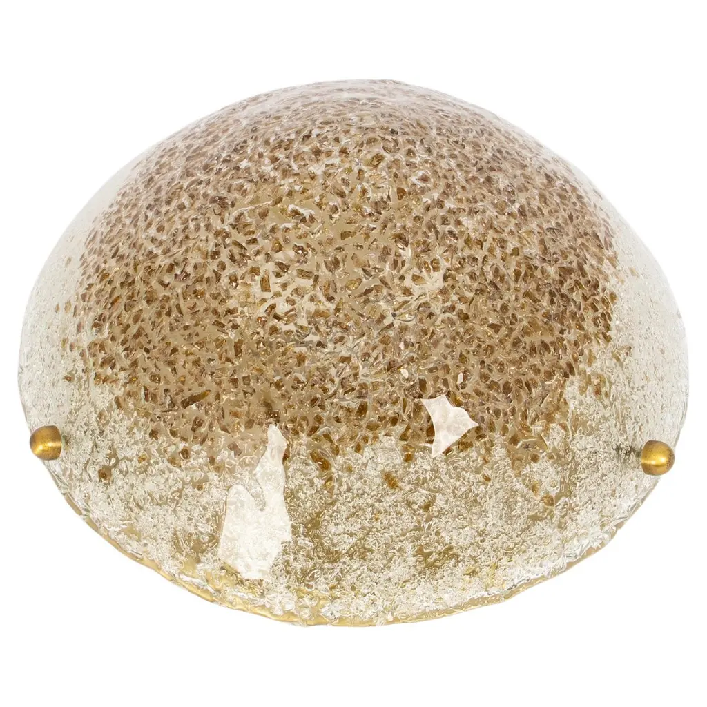1 Of 2 Large Brass Flushmount Murano By Hillebrand, Germany, 1970s