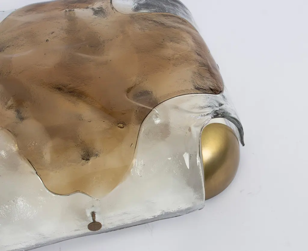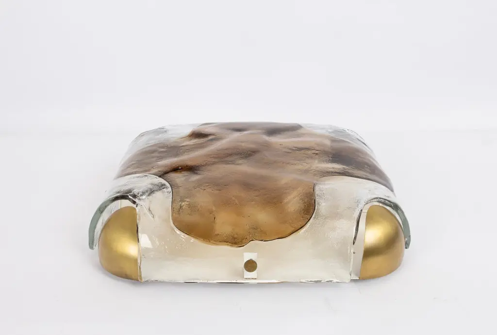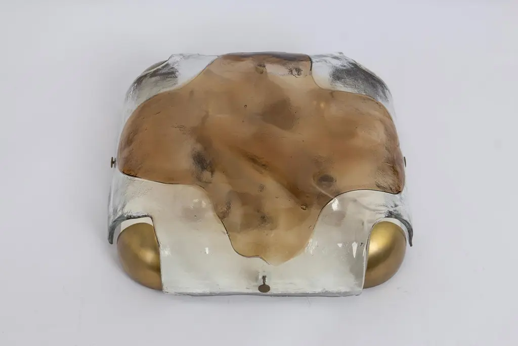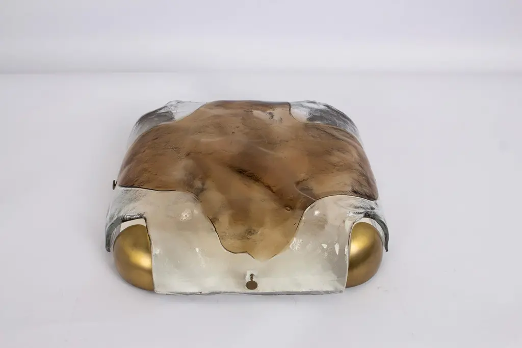A wonderful Murano glass flush mount by kaiser, Germany, 1970s.Thick textured Glass fixtured on a metal and brass base.High quality and in very good condition. Cleaned, well-wired, and ready to use. The fixture requires 4 x E27 standard bulbs with 60W max each.Light bulbs are not included. It is possible to install this fixture in all countries (US, UK, Europe, Asia, Australia,..)Please note that the price listed is for one item.Two Items are available.