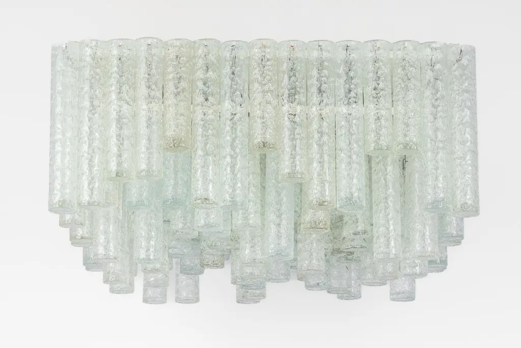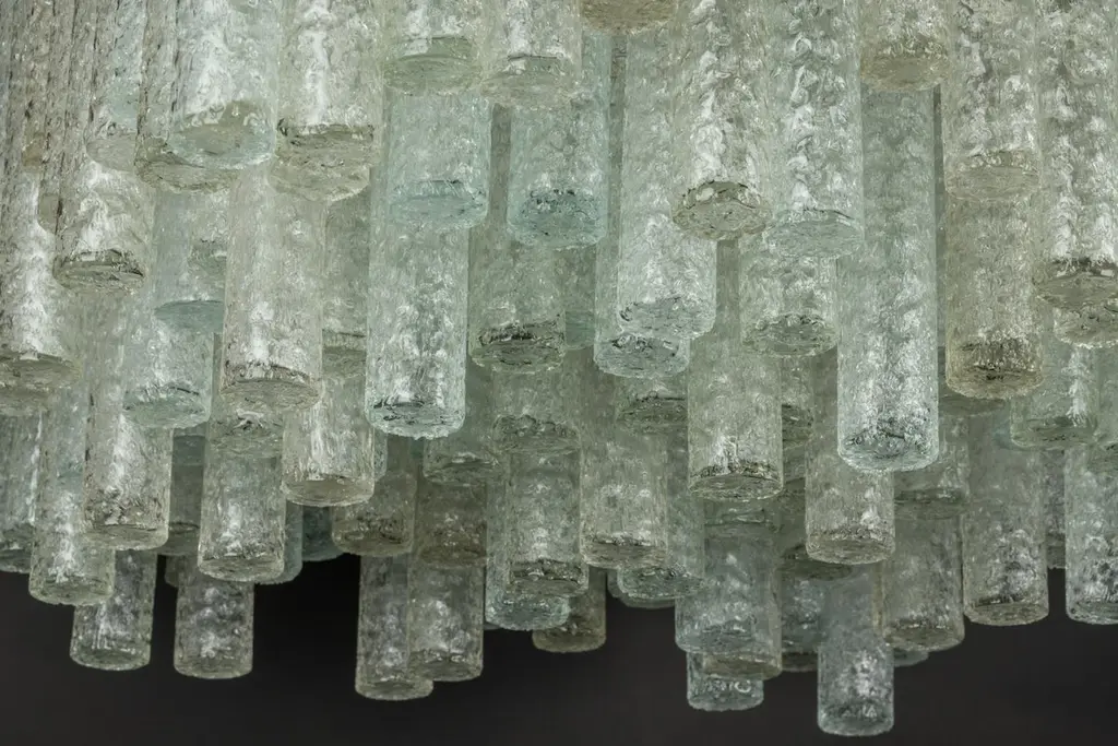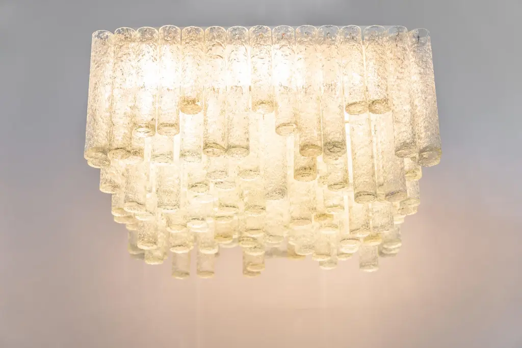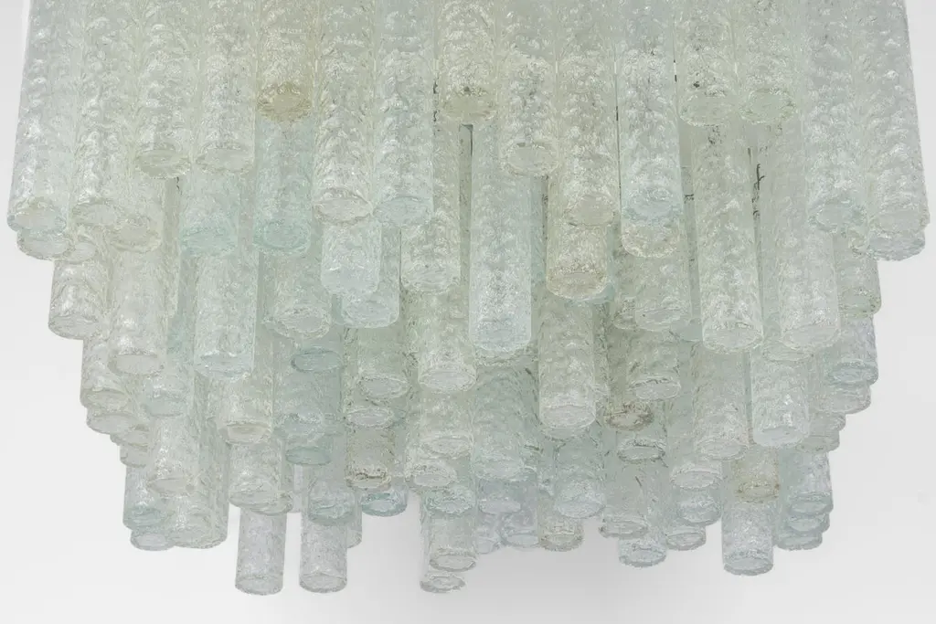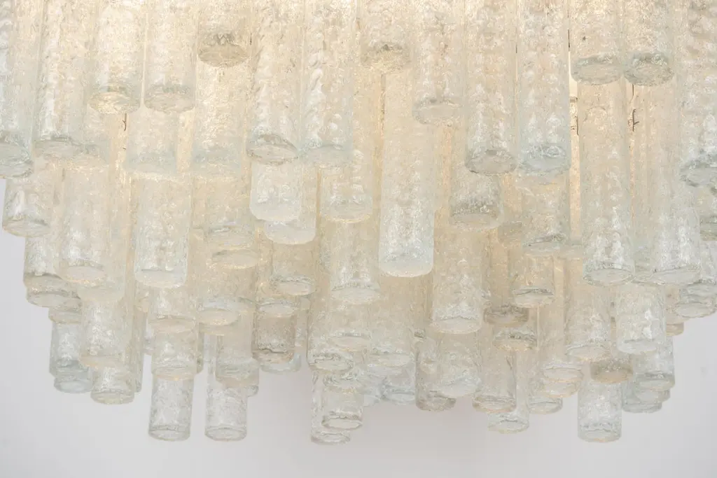 1 of 2 Fantastic big midcentury chandeliers by Doria, Germany, manufactured, circa 1960-1969. A large number of Murano glass cylinders are suspended from the fixture.Dimensions:Diameter 60 cm // 23.6 inches Height 34 cm // 13.4 inchesWonderful geometric design.High quality and in very good condition. Cleaned, well-wired and ready to use. The fixture requires 8 standard bulbs.Light bulbs are not included. It is possible to install this fixture in all countries (US, UK, Europe, Asia, Australia,..)