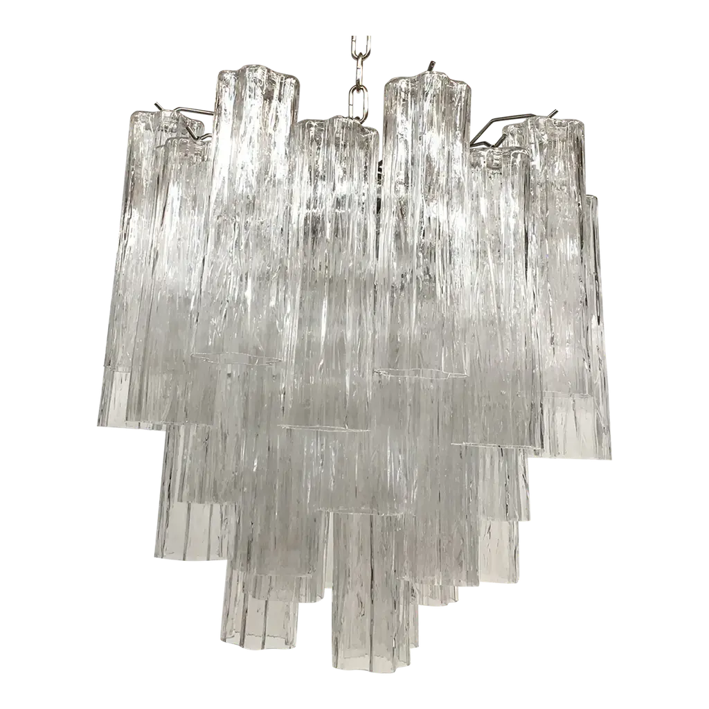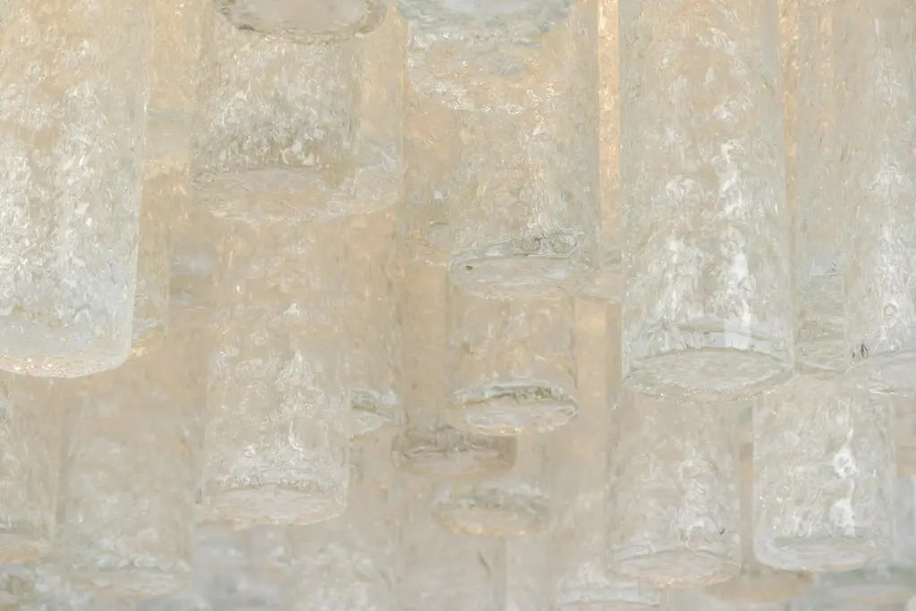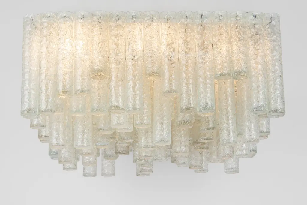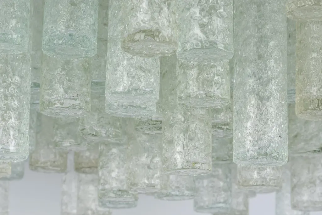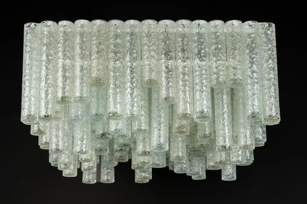 1 of 2 Fantastic big midcentury chandeliers by Doria, Germany, manufactured, circa 1960-1969. A large number of Murano glass cylinders are suspended from the fixture.Dimensions:Diameter 60 cm // 23.6 inches Height 34 cm // 13.4 inchesWonderful geometric design.High quality and in very good condition. Cleaned, well-wired and ready to use. The fixture requires 8 standard bulbs.Light bulbs are not included. It is possible to install this fixture in all countries (US, UK, Europe, Asia, Australia,..)