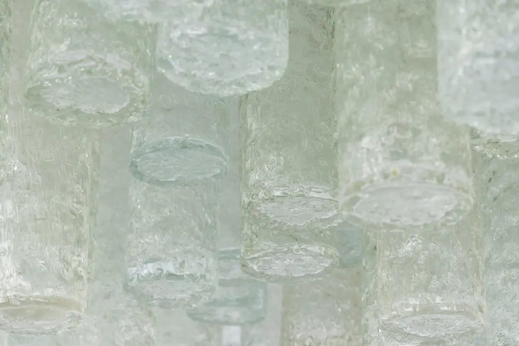 1 Of 2 Large Stunning Murano Ice Glass Flush Mount By Doria, Germany, 1960s