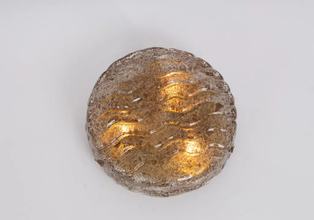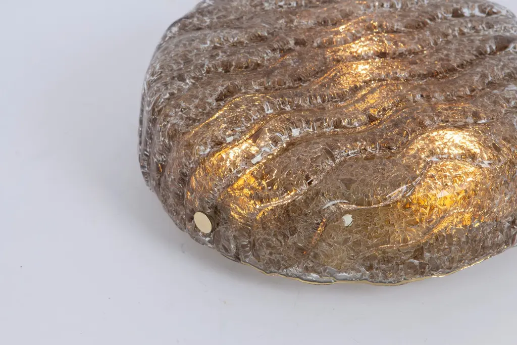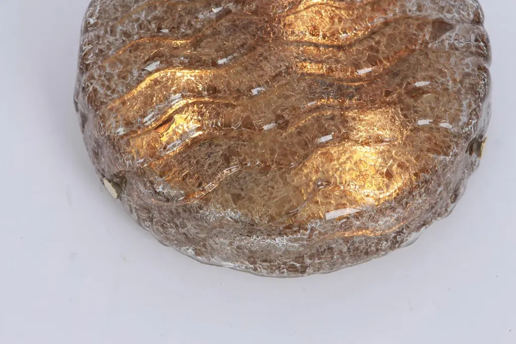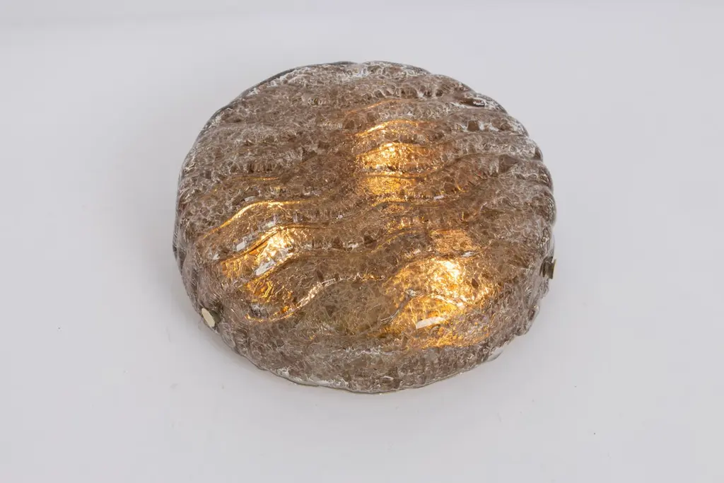 A wonderful Murano glass flush mount by Kaiser, Germany, 1970s.Thick textured Glass fixtured on a metal and brass screws.High quality and in very good condition. Cleaned, well-wired, and ready to use. The fixture requires 3 x E14 small bulbs with 40W max each.Light bulbs are not included. It is possible to install this fixture in all countries (US, UK, Europe, Asia, Australia,..)Please note that the price listed is for one item.2 items are available.