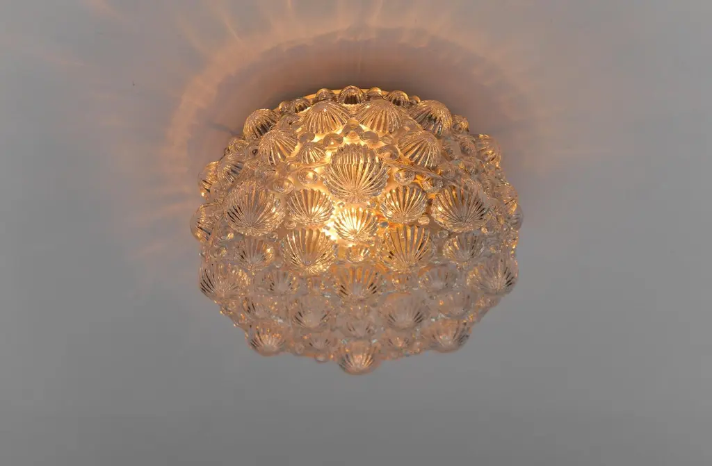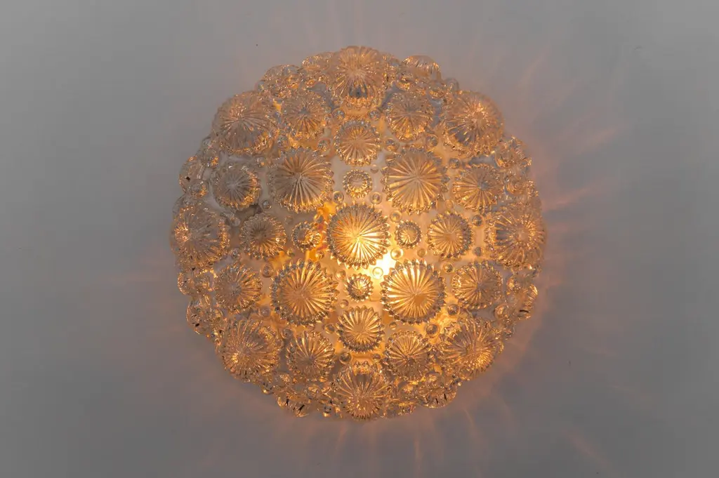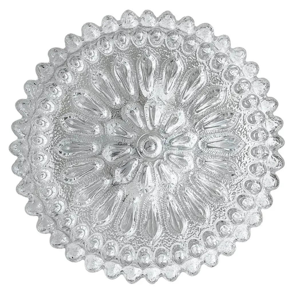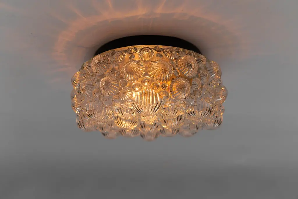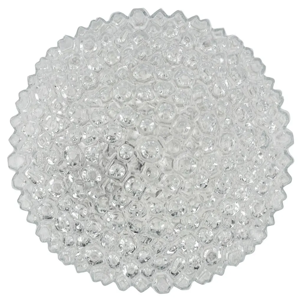 1. of 2 Round Mid-Century Modern 3D Fossil Shell Shape Flush Mount Lamp, 1960s Executed in ice glass and metal. This lamp need 1 x E14 / E15 Edison screw fit bulb is wired, in working condition and runs both on 110 / 230 volt. Dimmable.Our lamps are checked, cleaned and are suitable for use in the USA.