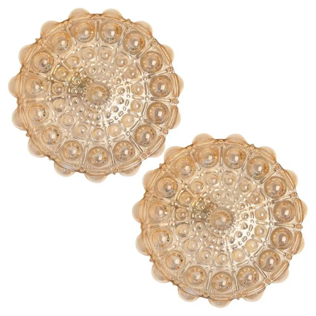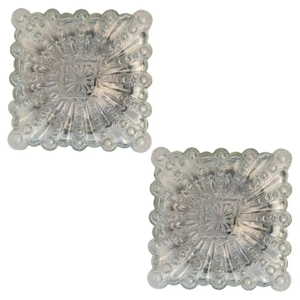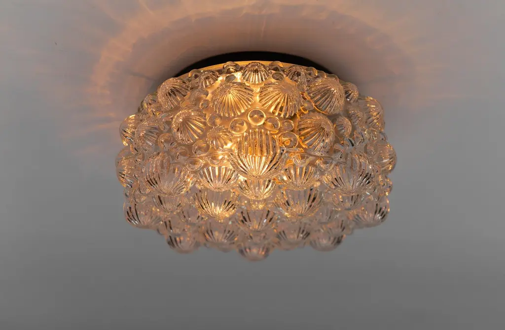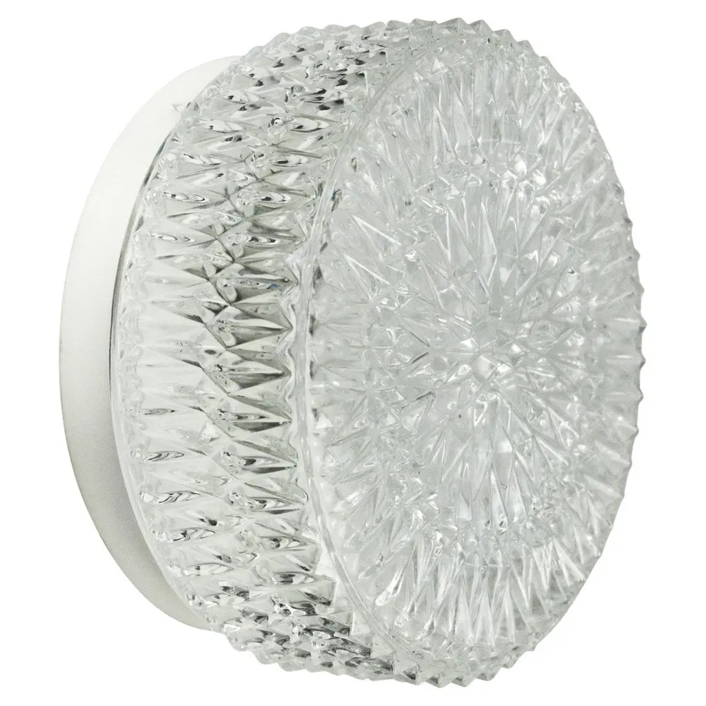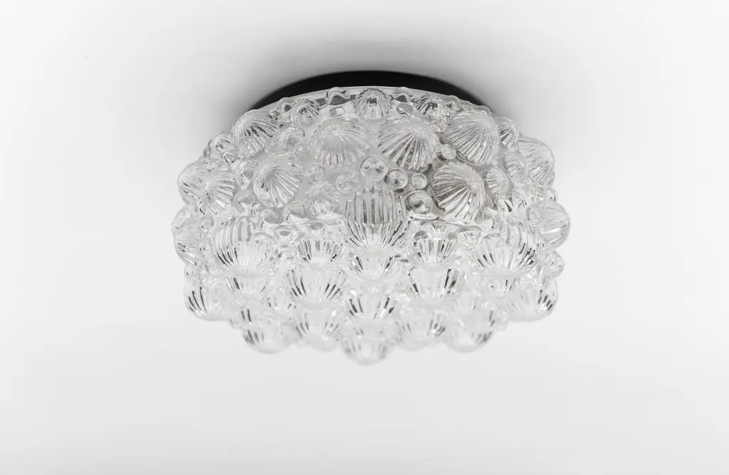 1. of 2 Round Mid-Century Modern 3D Fossil Shell Shape Flush Mount Lamp, 1960s Executed in ice glass and metal. This lamp need 1 x E14 / E15 Edison screw fit bulb is wired, in working condition and runs both on 110 / 230 volt. Dimmable.Our lamps are checked, cleaned and are suitable for use in the USA.