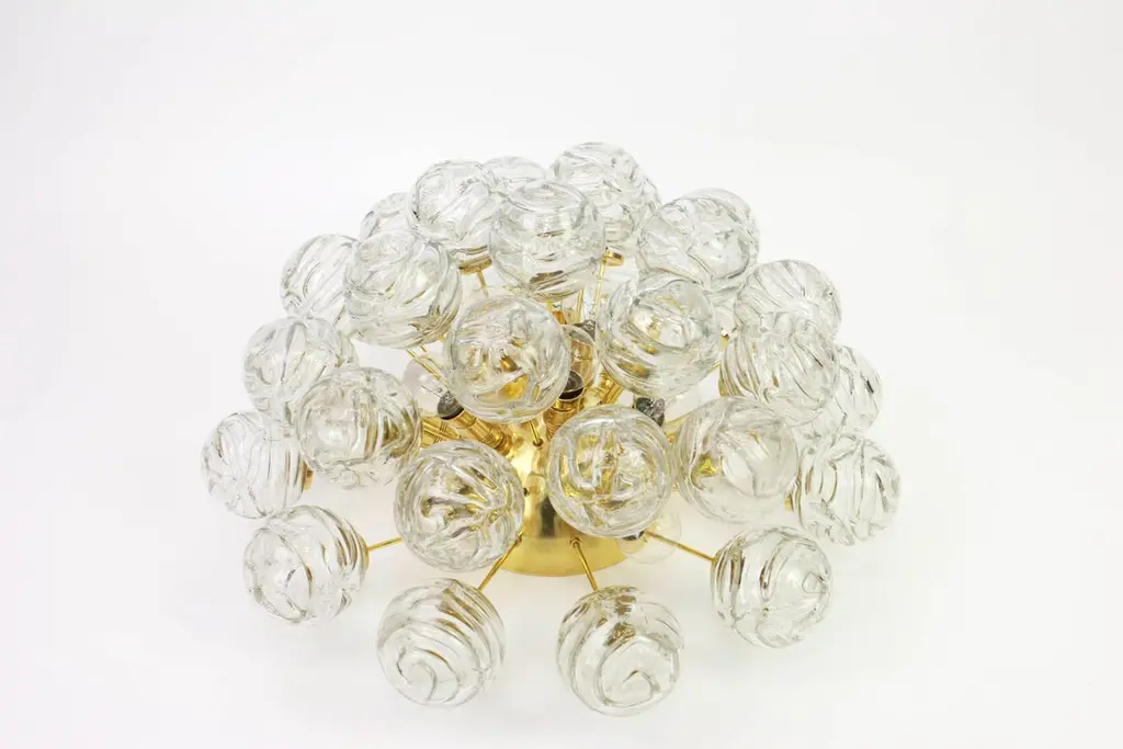 Spectacular Sputnik flushmount with glass snowballs designed by Doria, Germany, 1970sAll glass balls are in good condition.It needs 12 small size bulbs (E-14 bulbs) up to 40 watts each Light bulbs are not included. It is possible to install this fixture in all countries (US, UK, Europe, Asia, Australia,..)2 items are available.
