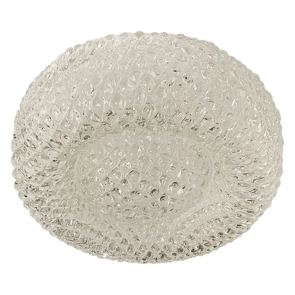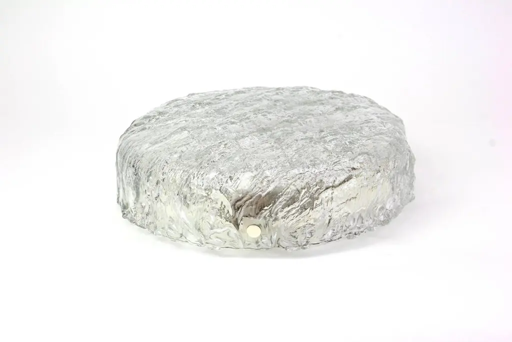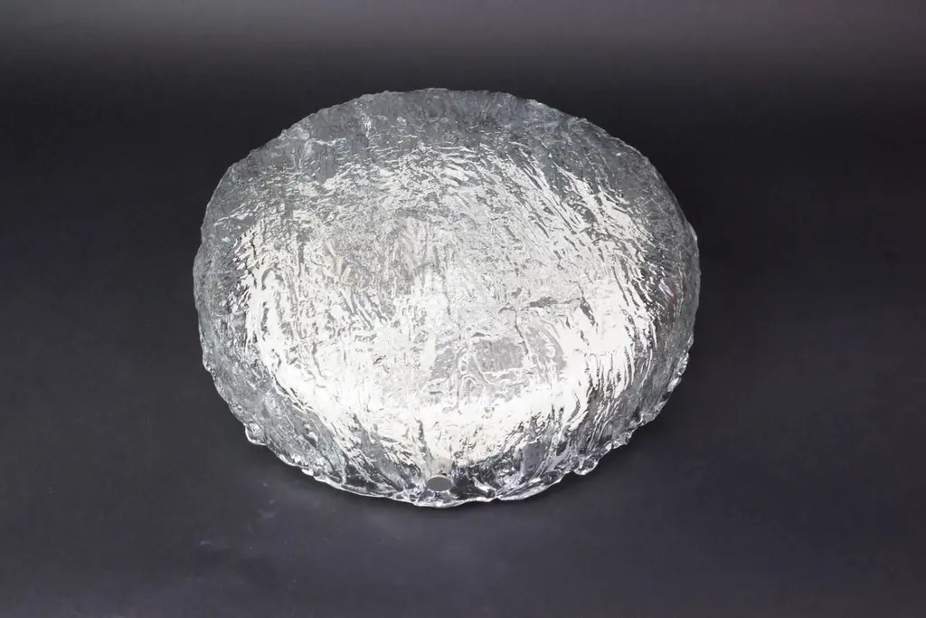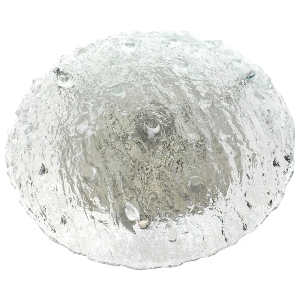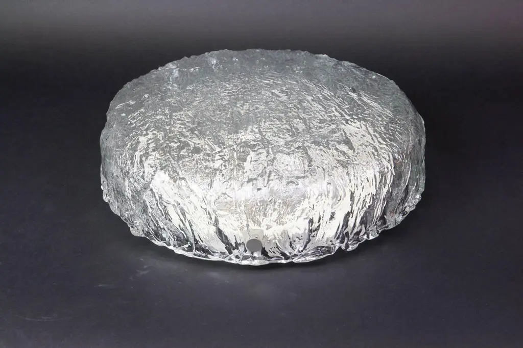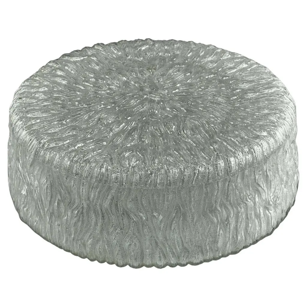 1 Of 3 Big Round Murano Ice Glass Flushmount, Kaiser, Germany, 1970s