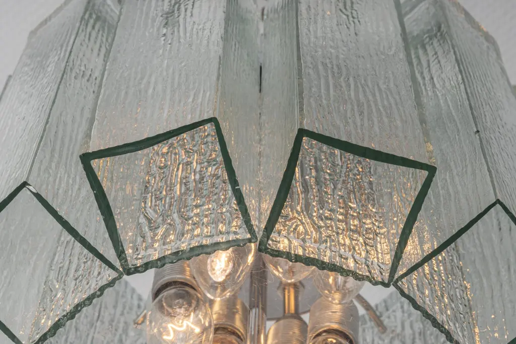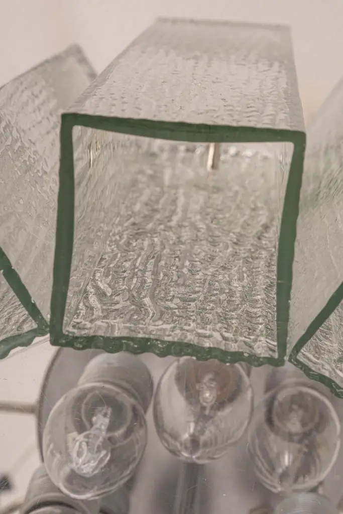 Fantastic mid-century chandelier by Limburg, Germany, manufactured circa 1960-1969. 12 glass cylinders are suspended from the fixture.Very good condition. Cleaned, well-wired, and ready to use.Each fixture requires 8 x E14 small bulbs with 40W max for each socket.Light bulbs are not included. It is possible to install this fixture in all countries (US, UK, Europe, Asia, Australia,..)