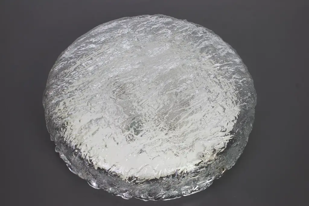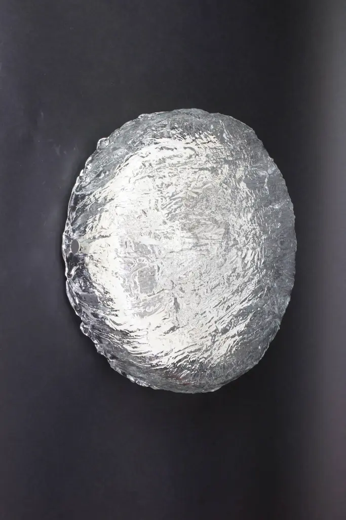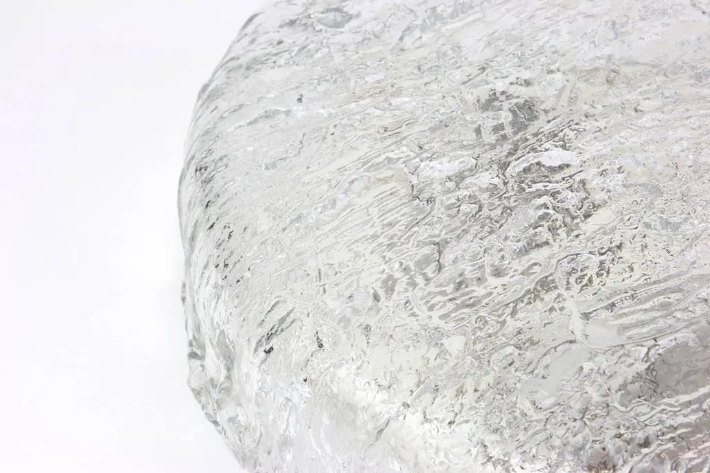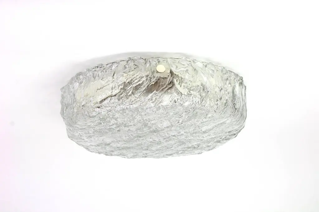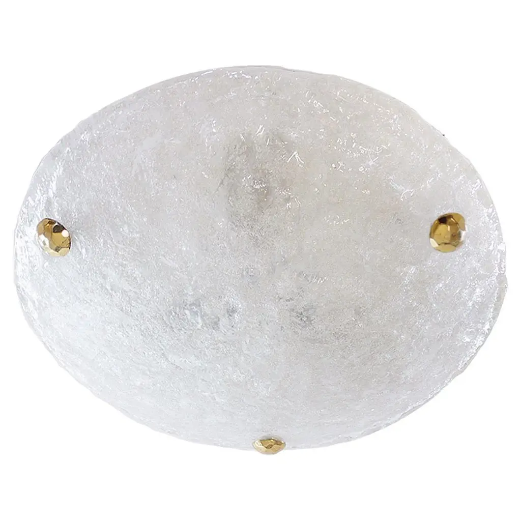 1 Of 3 Large Round Murano Ice Glass Flush Mount, Kaiser, Germany, 1970s