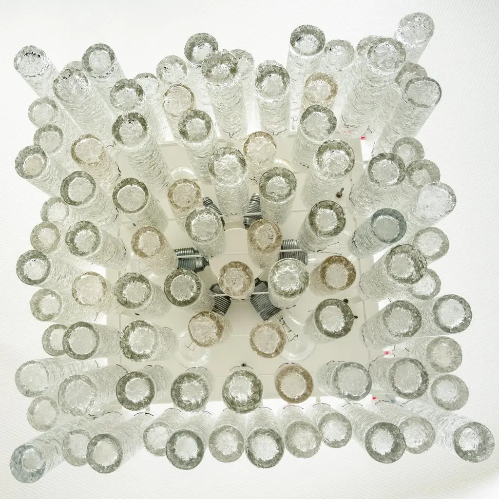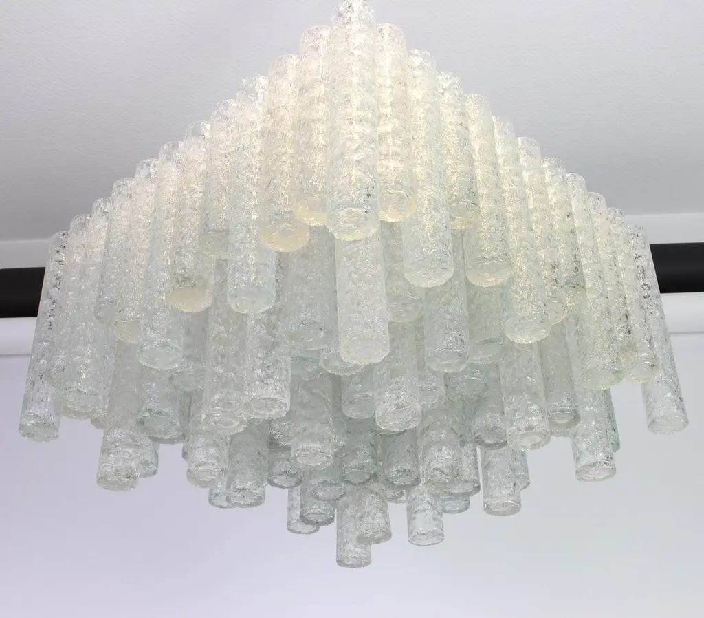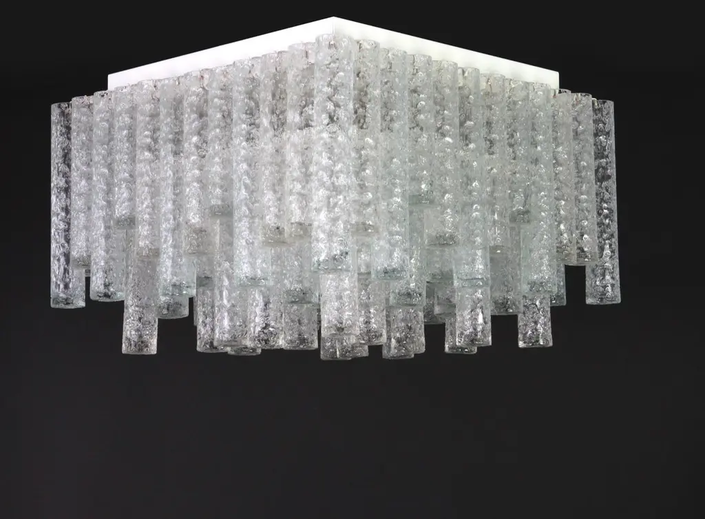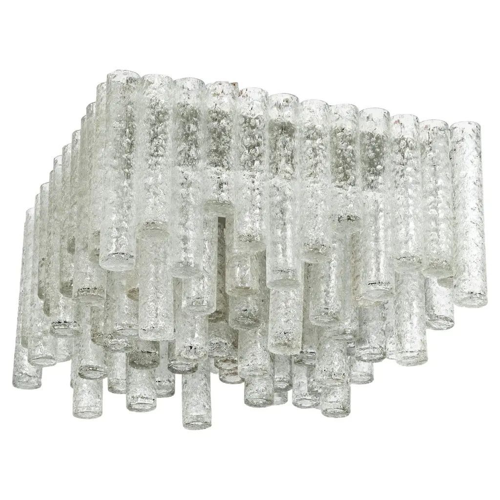 1 Of 3 Large Stunning Murano Ice Glass Tubes Flush Mount By Doria Germany, 1960s