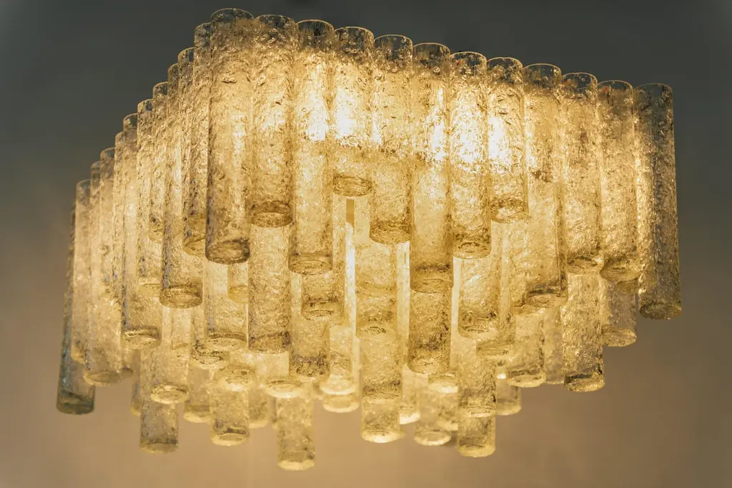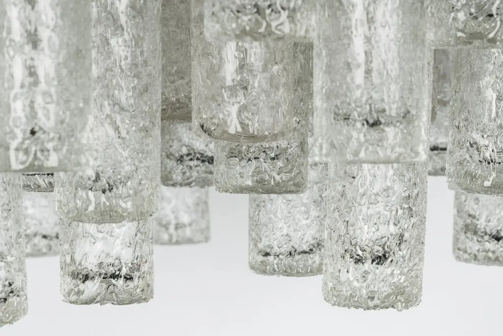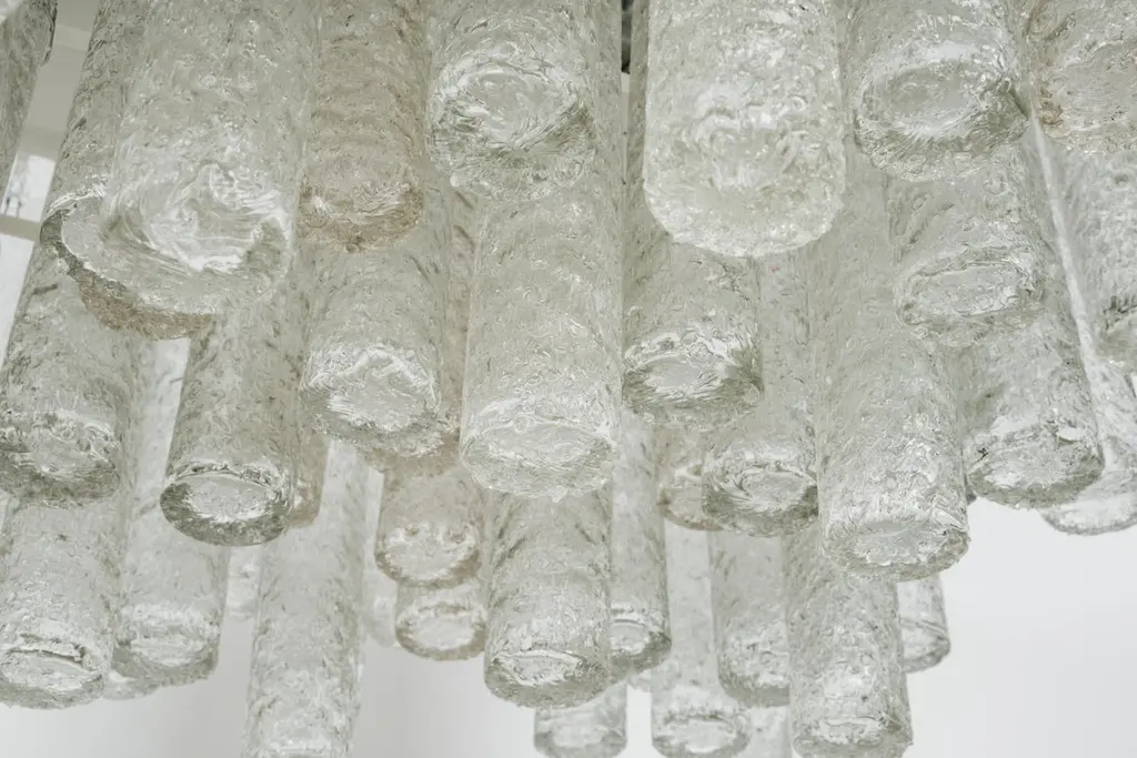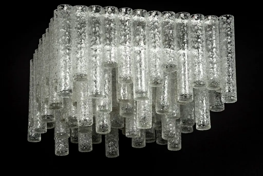 1 Of 3 Large Stunning Murano Ice Glass Tubes Flush Mount By Doria Germany, 1960s