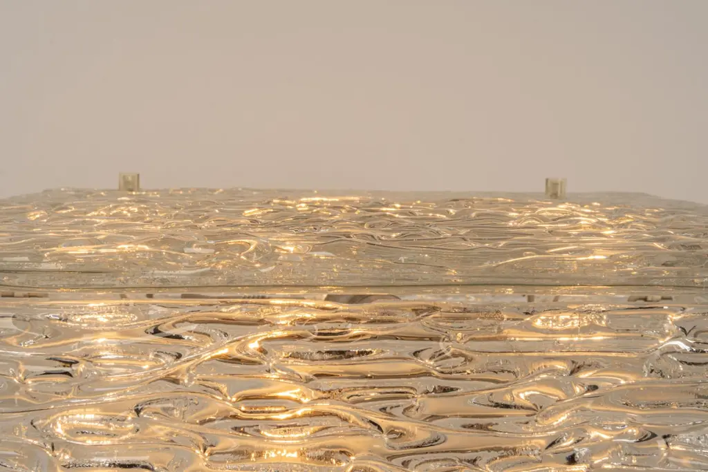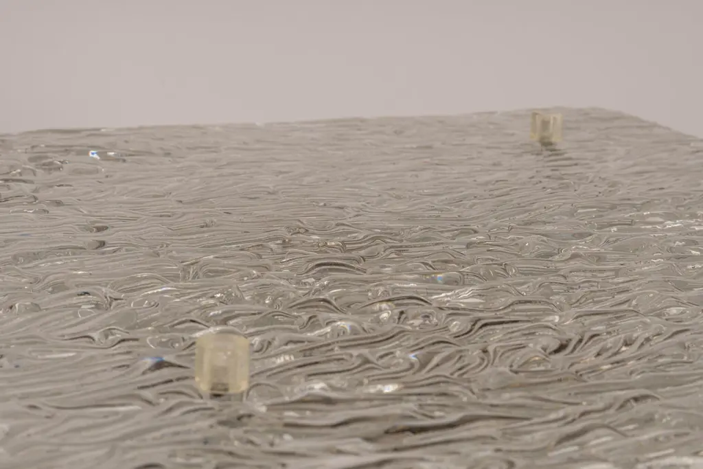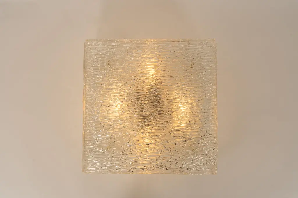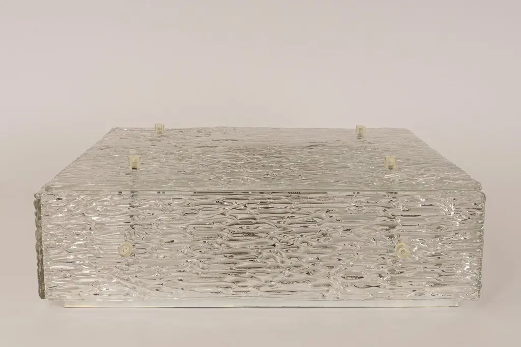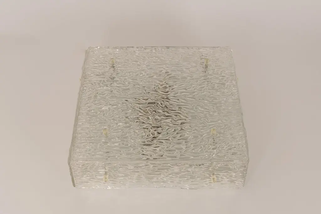 A stunning flush mount light by Kalmar, Austria, manufactured in the 1960s.The flush mount is composed of five thick textured Murano glass elements attached to a white metal frame.Heavy quality and in very good condition. Cleaned, well-wired, and ready to use. The fixture requires four E27 Standard bulbs with 60W max each.Light bulbs are not included. It is possible to install this fixture in all countries (US, UK, Europe, Asia, Australia,..)Three items are available.The listed price is for one item.