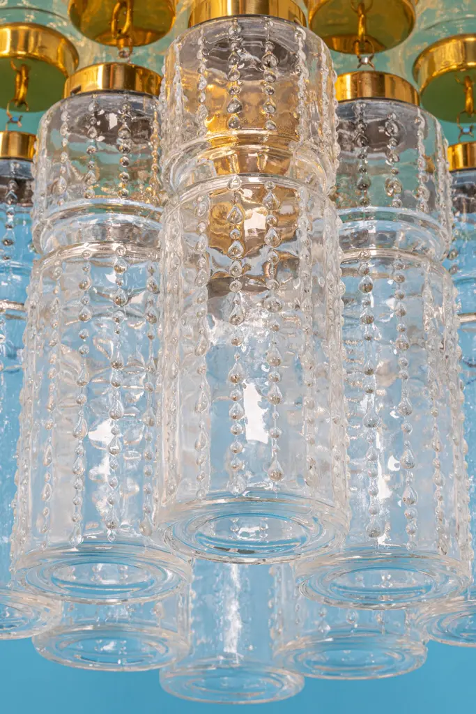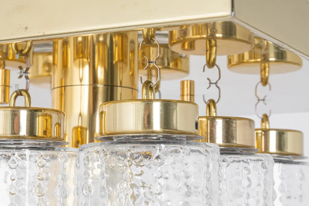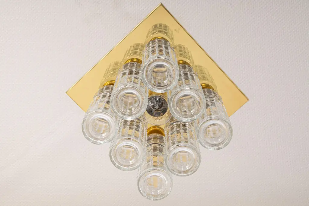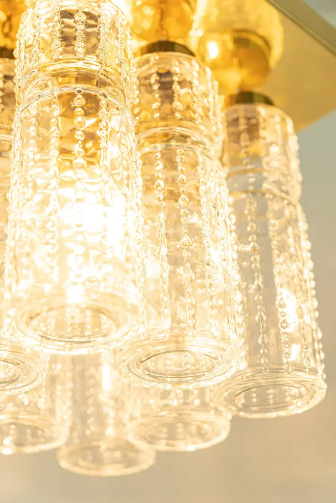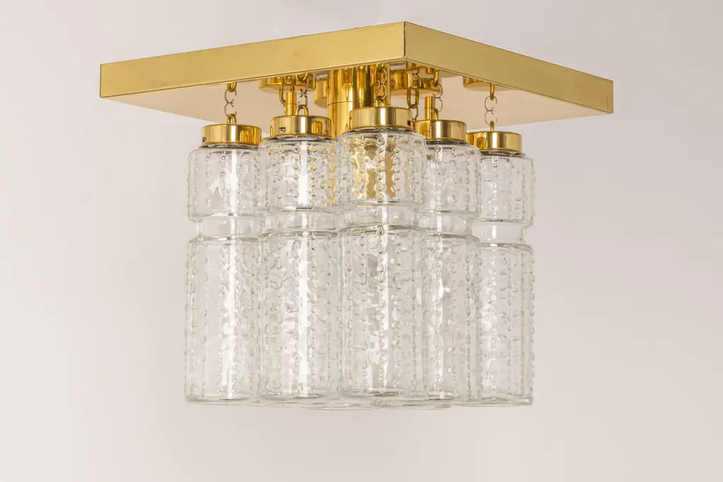 1 of 3 flush mounts with hand-blown glass pieces on a brass base made by Glashütte Limburg.Best of the 1970s from Germany.High quality and in very good condition. Cleaned, well-wired and ready to use. The fixture requires 1 x E27 Standard bulbs.Light bulbs are not included. It is possible to install this fixture in all countries (US, UK, Europe, Asia, Australia,..)Please note the price listed is per Item.3 items are available.