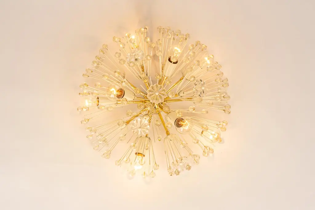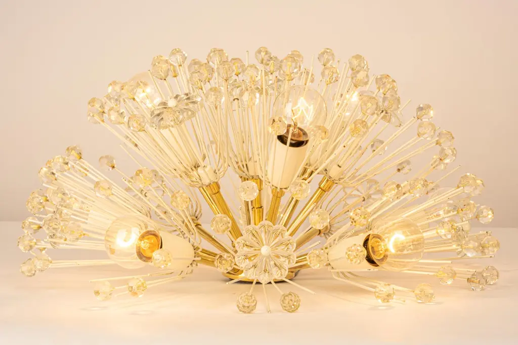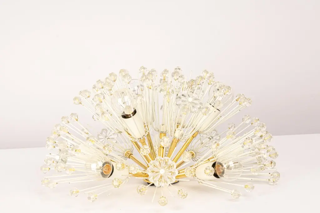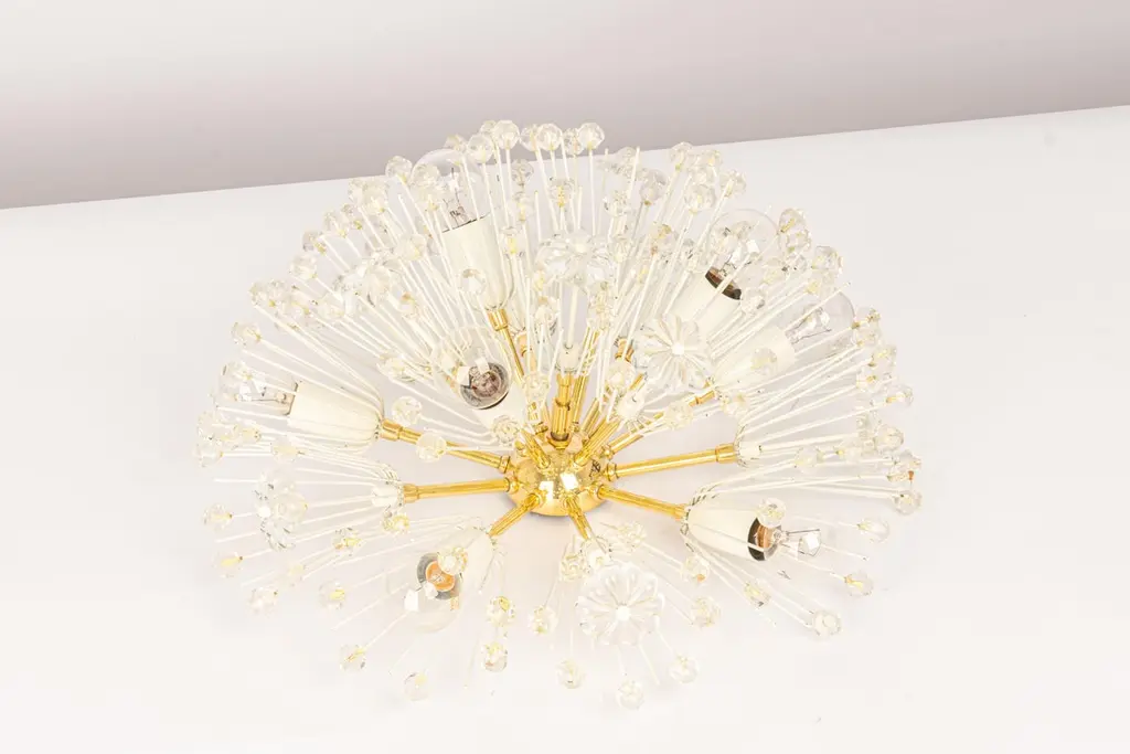 1 Of 3 Starburst Brass And Crystal Flush Mount By Emil Stejnar, Austria, 1960s