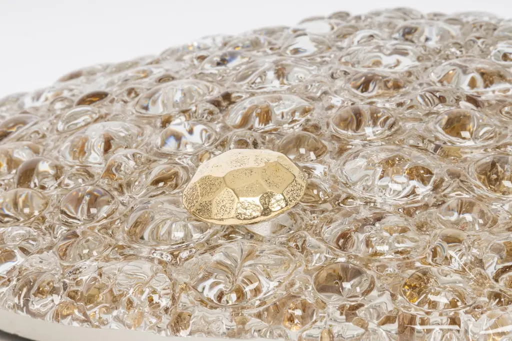 1 'Of 4' Big Round Bubble Murano Amber Flushmount By Hillebrand, Germany, 1970s