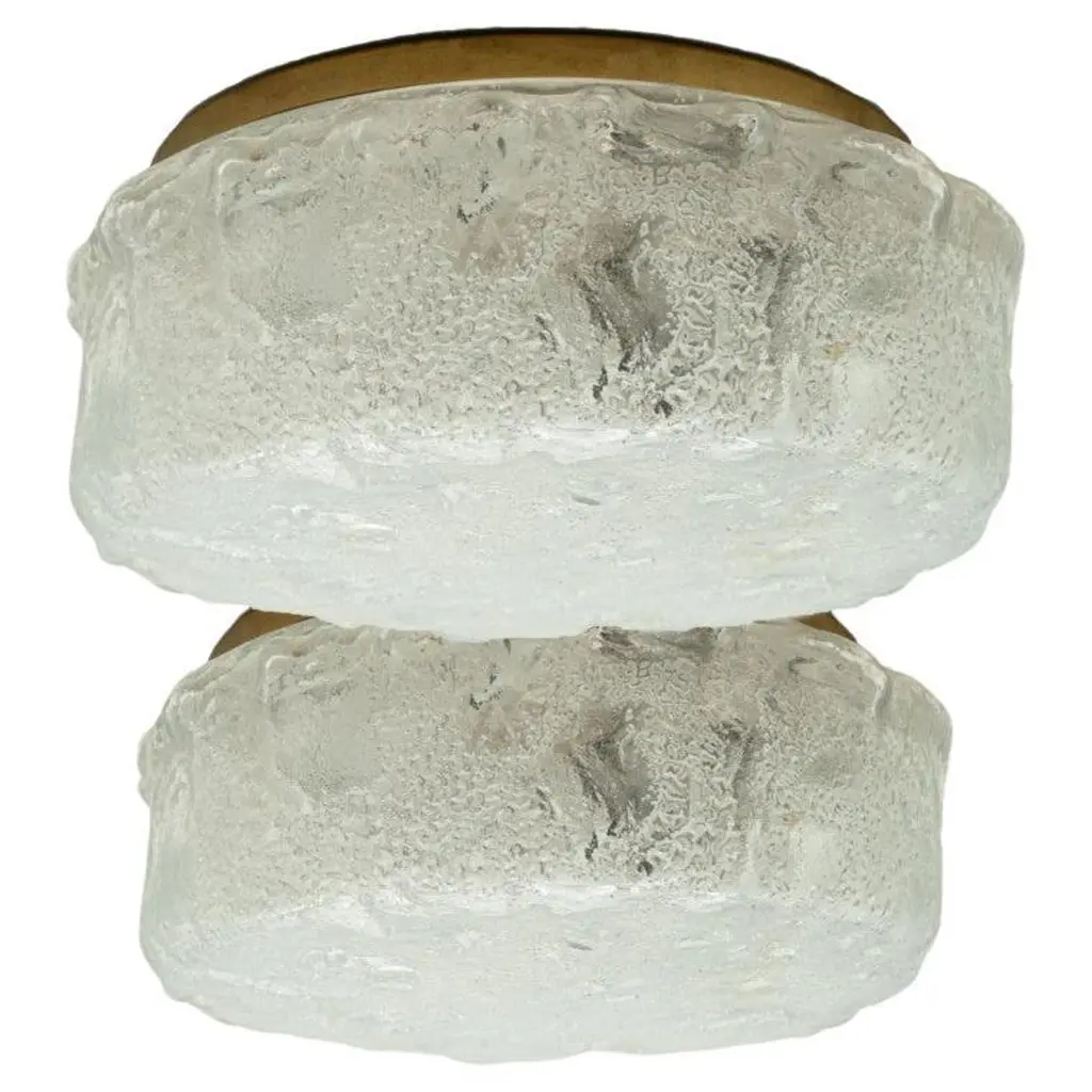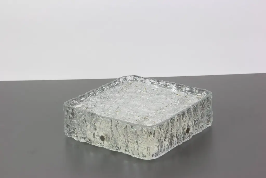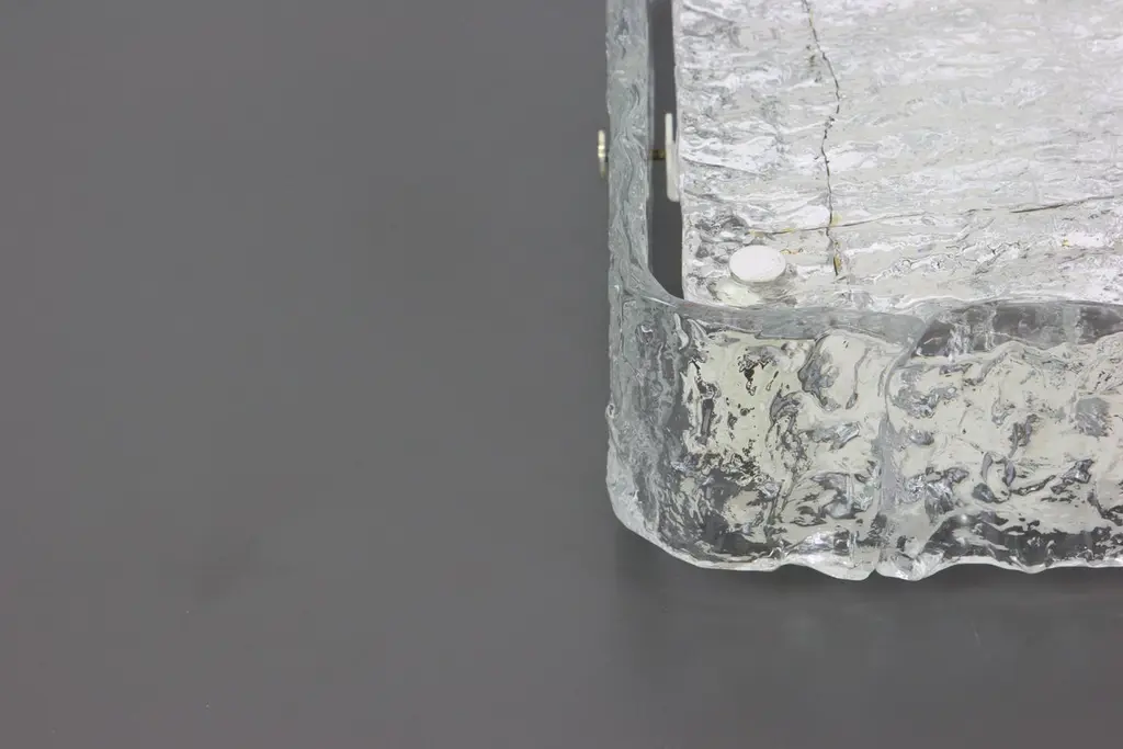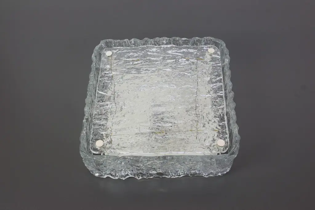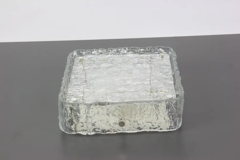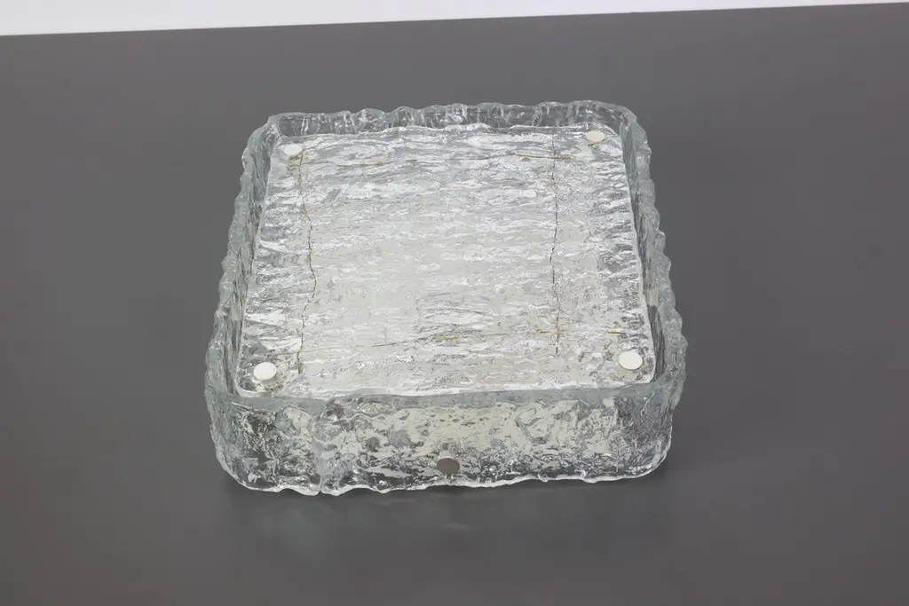 1 Of 4 Square Murano Ice Glass Flush Mount, Kaiser, Germany, 1970s
