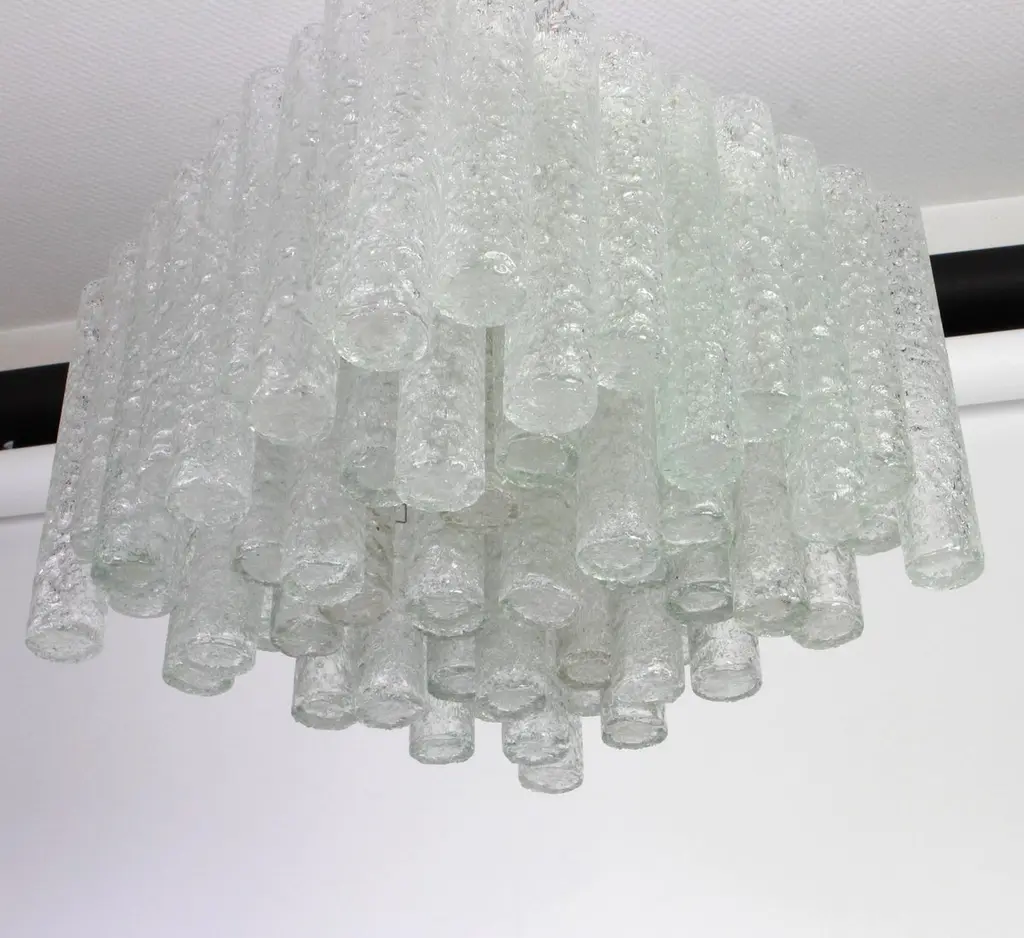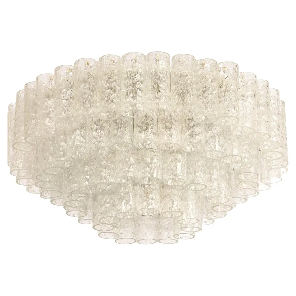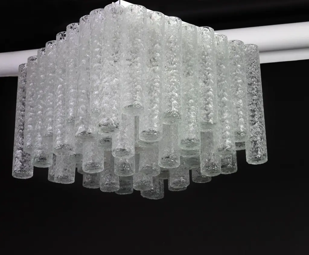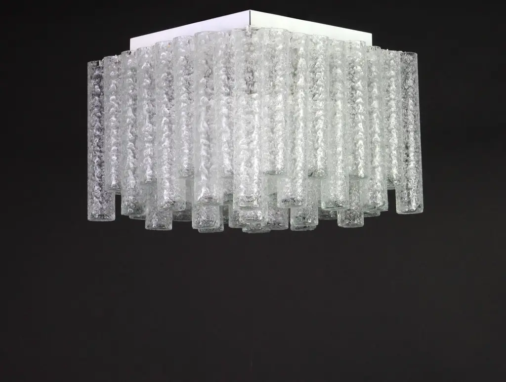 1 Of 6 Stunning Murano Ice Glass Tubes Flushmount By Doria, Germany, 1960s