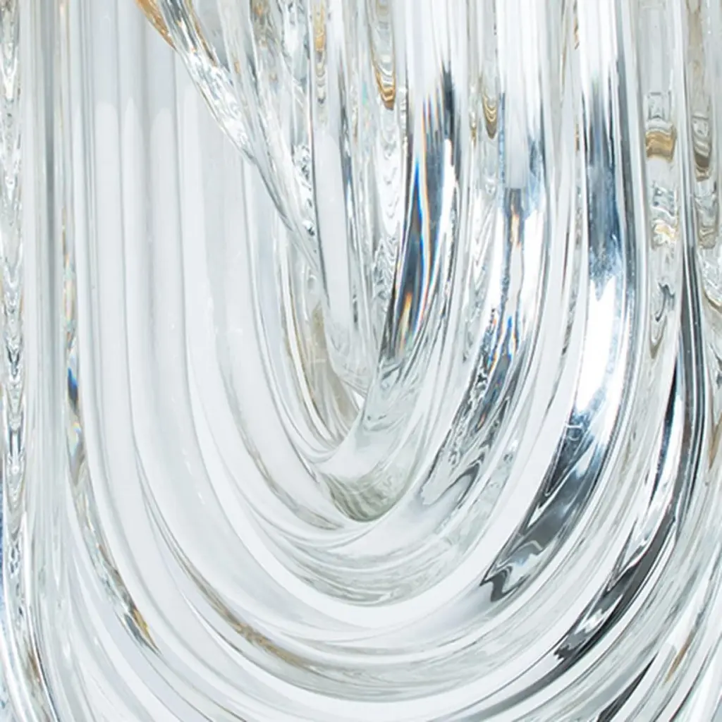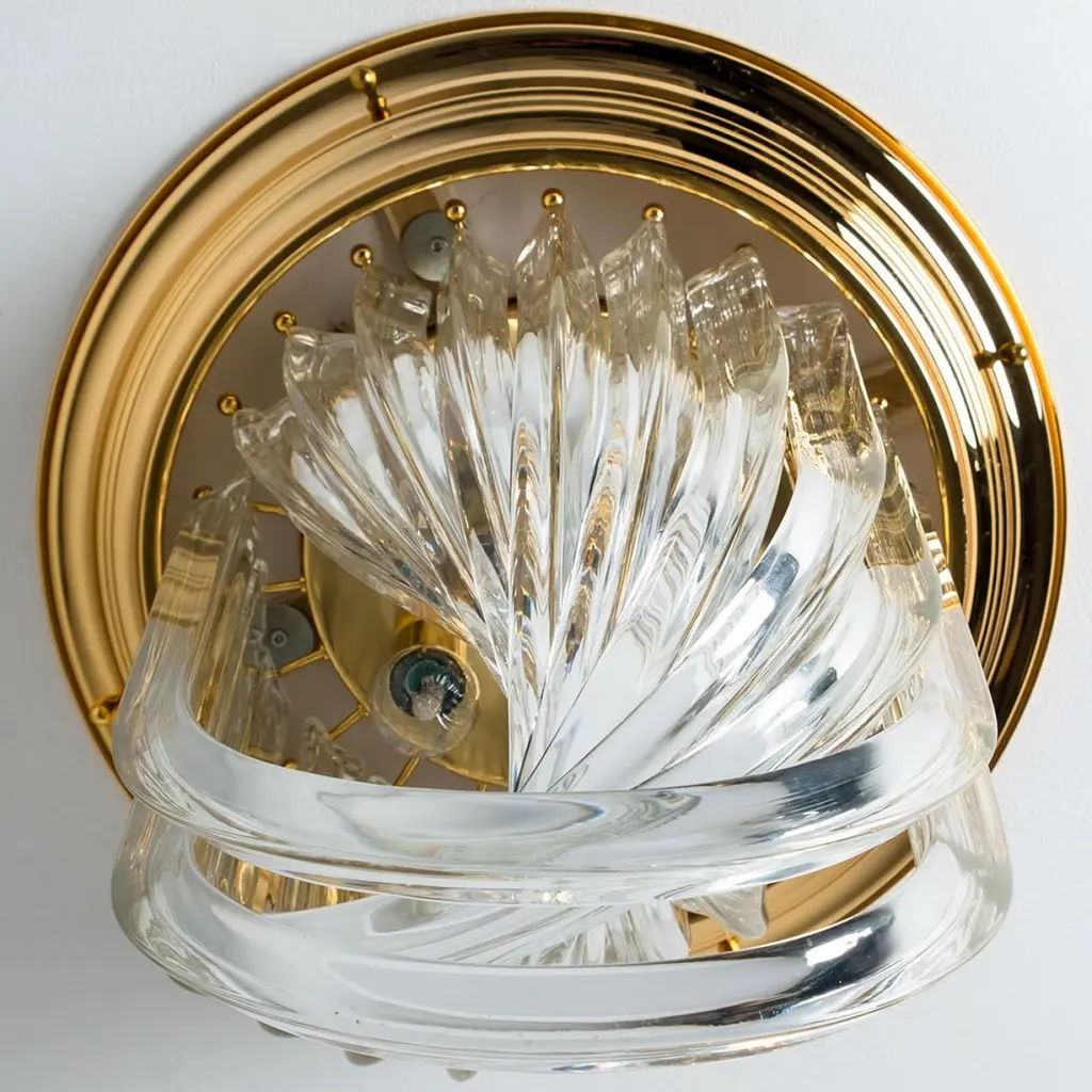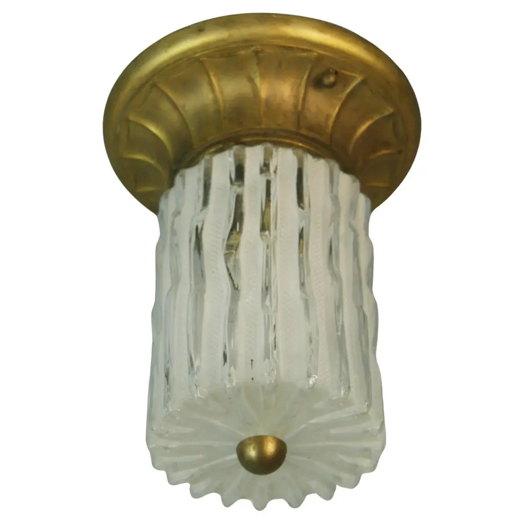 1 Of The 2 Venini Flush Mounts, Curved Crystal Glass And Brass, Italy, 1970