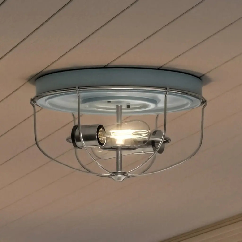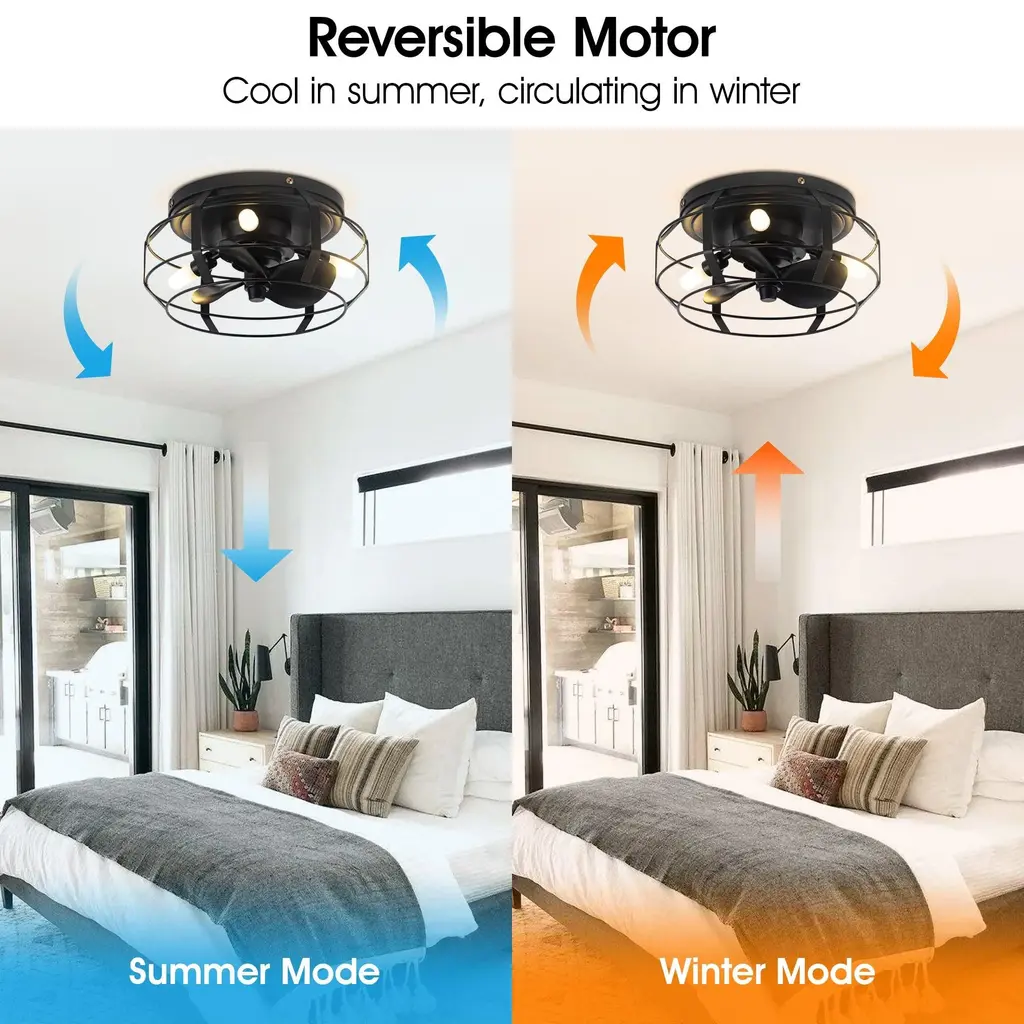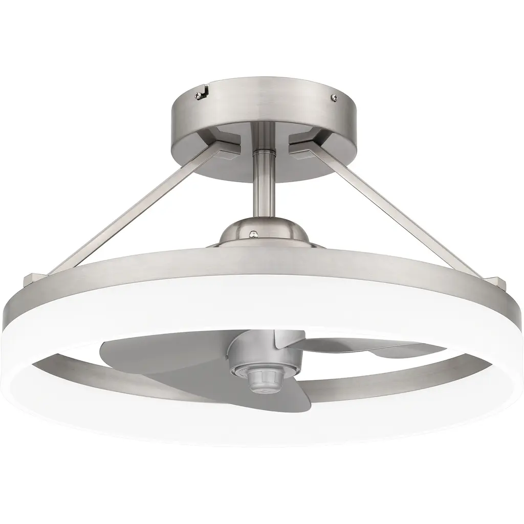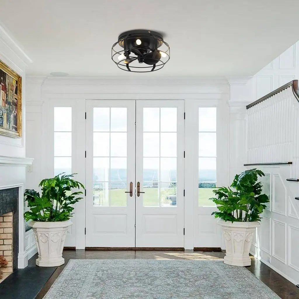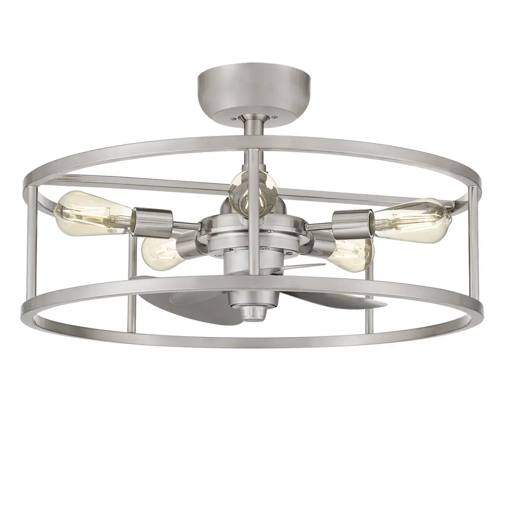 12" Flush Mount Low Profile Caged Small Ceiling Fan With Light And Remote Control - Satin Nickel