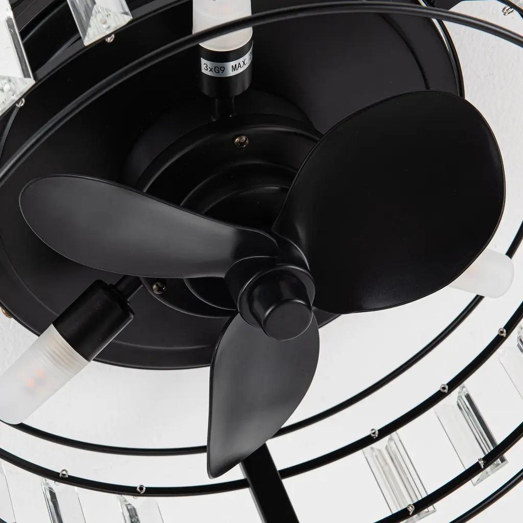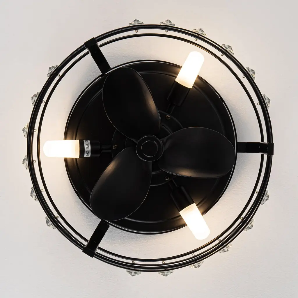 Our 13" Flush Mount Ceiling Fan Light illuminates your space with vintage design and industrial style, perfectly matching your modern furniture style. The crystals on the lampshade outside will be the finishing touch to your home decor. It is equipped with 3 ABS fan blades and 3*G9 Max 2W Light (bulbs included) to meet your daily needs. Suitable for children's room, bedroom, kitchen island, or dining room.
