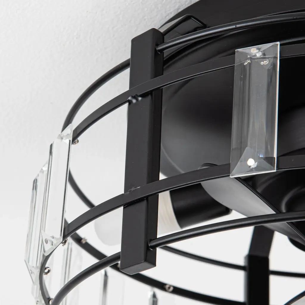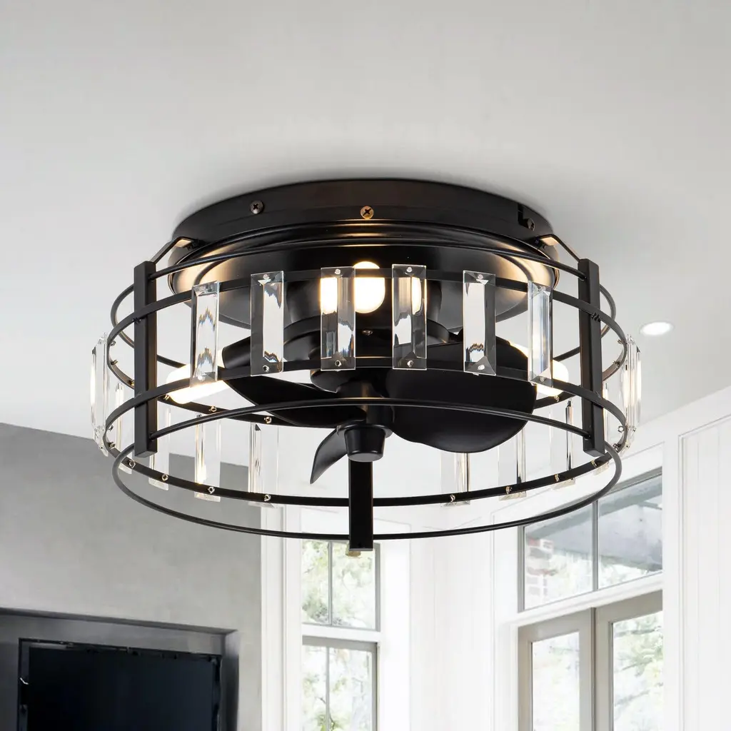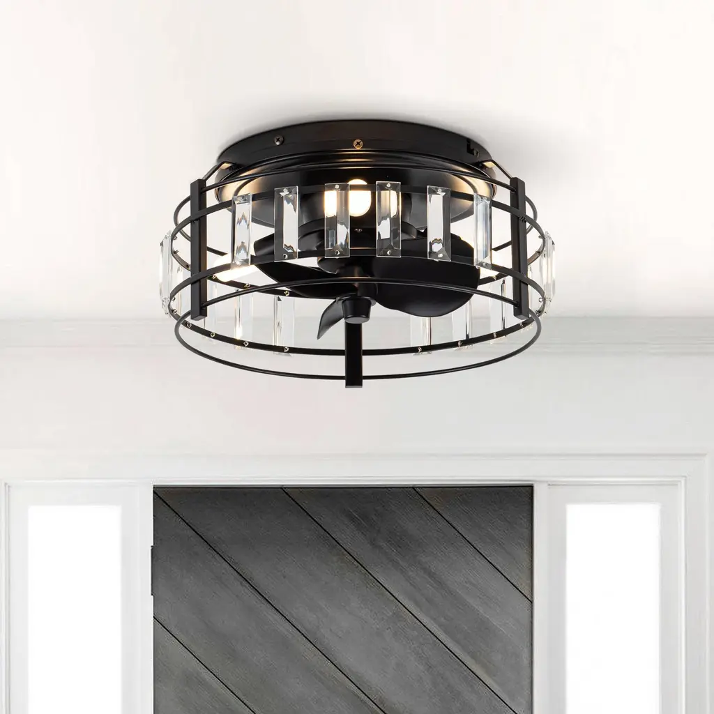13" Modern Dc Motor Flush Mount Reversible Crystal Ceiling Fan With Lighting And Remote Control - Black