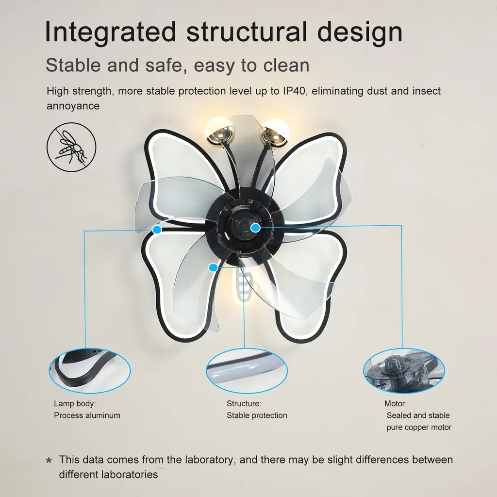 19.7 Inch Light Ceiling Fan With Lights Remote Control With Modern Butterfly Design Styling, Black - Black