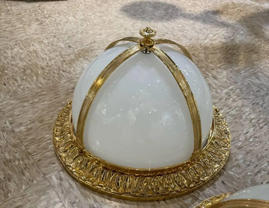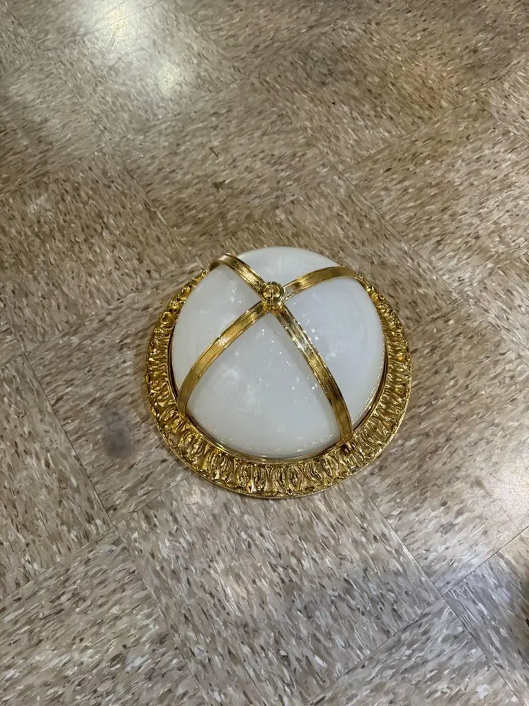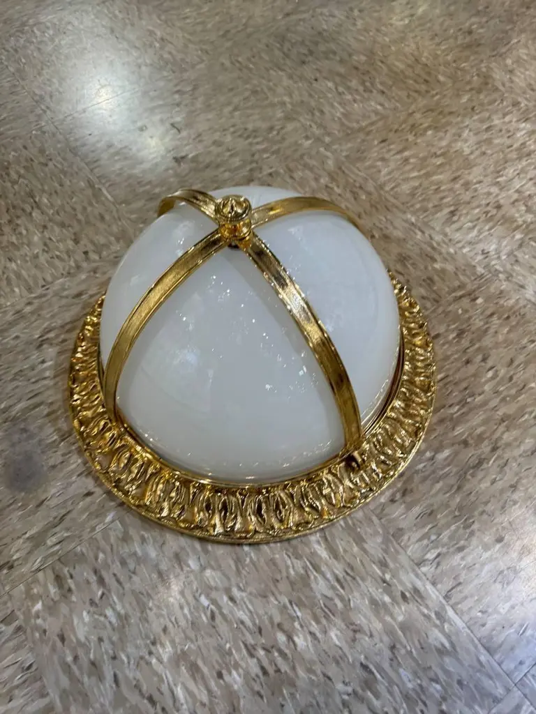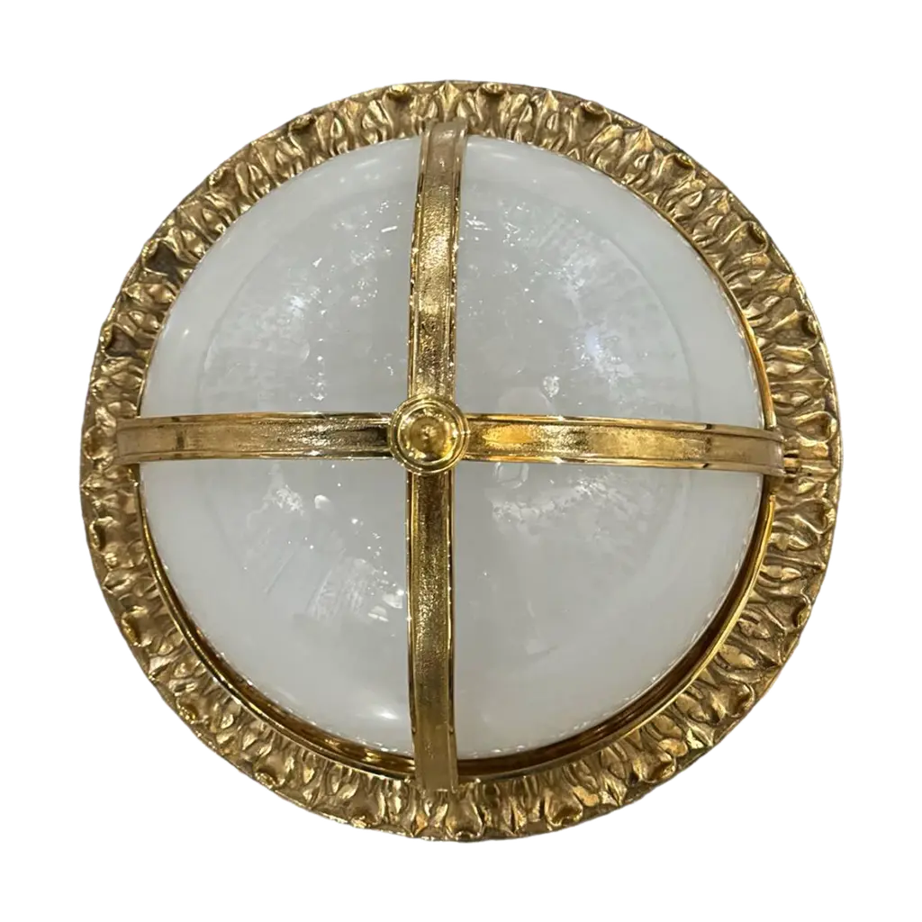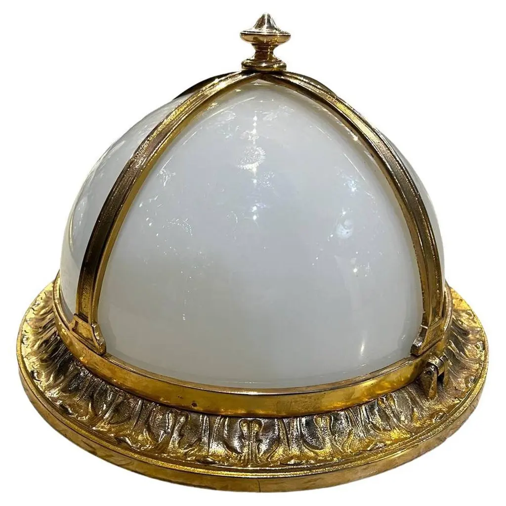 circa 1920's Caldwell gilt bronze flush mounted light fixture with Opaline glass inset. From Waldorf Hotel NYC.
