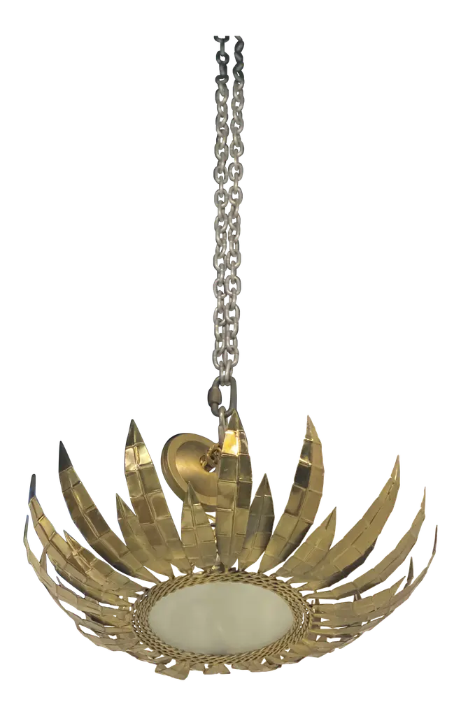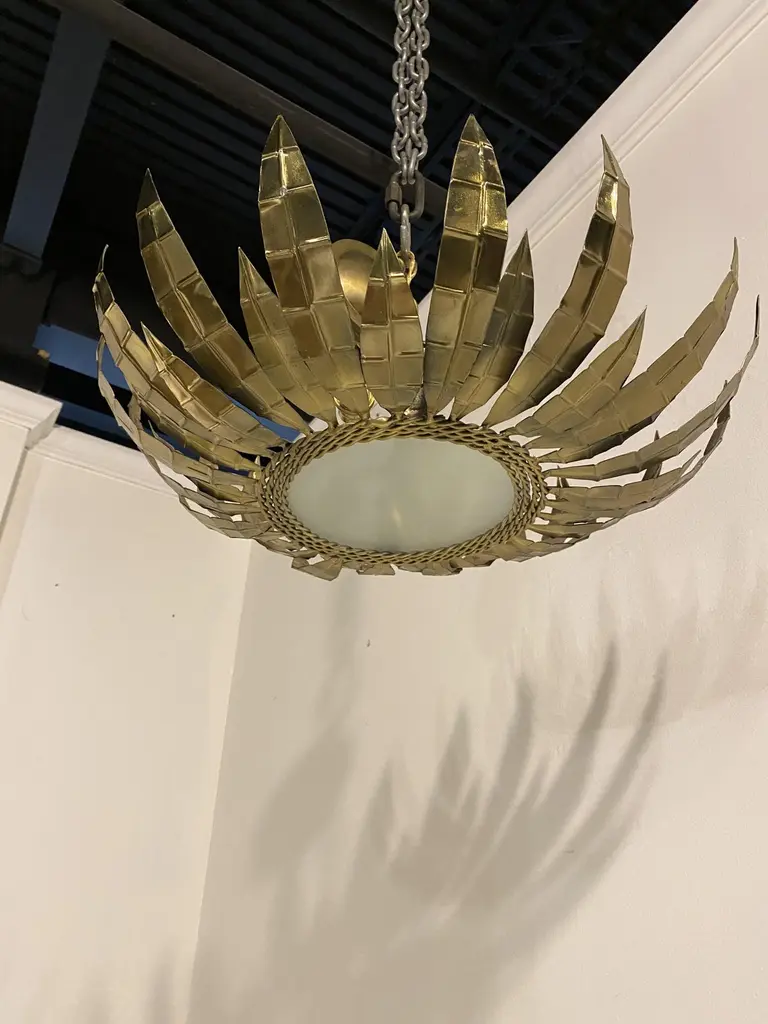 A circa 1930's French gilt metal sunburst light fixture