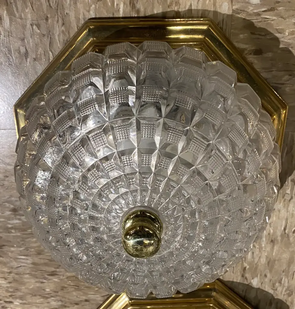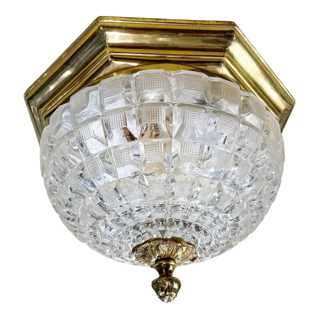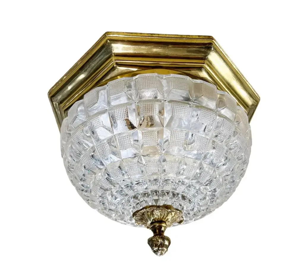 1940’s Cut Crystal And Bronze Flush Mounted Light Fixture