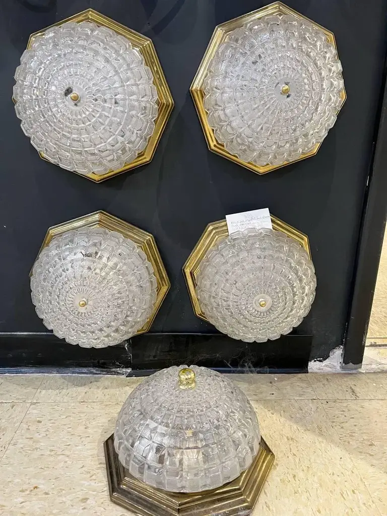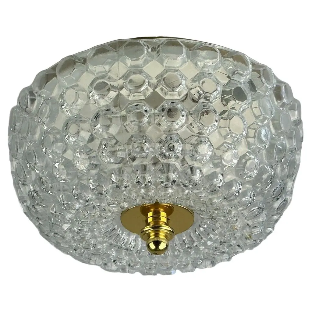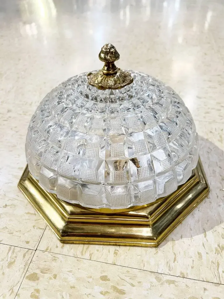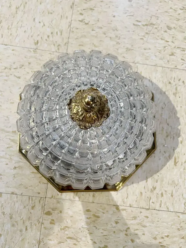 1940’s Cut Crystal And Bronze Flush Mounted Light Fixture