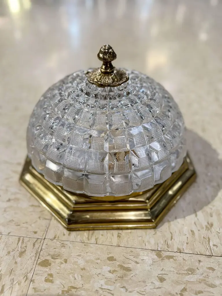 A circa 1940’s French cut crystal light fixture with 2 interior lights, from Waldorf hotel in NY (37 available). Might be with different finials