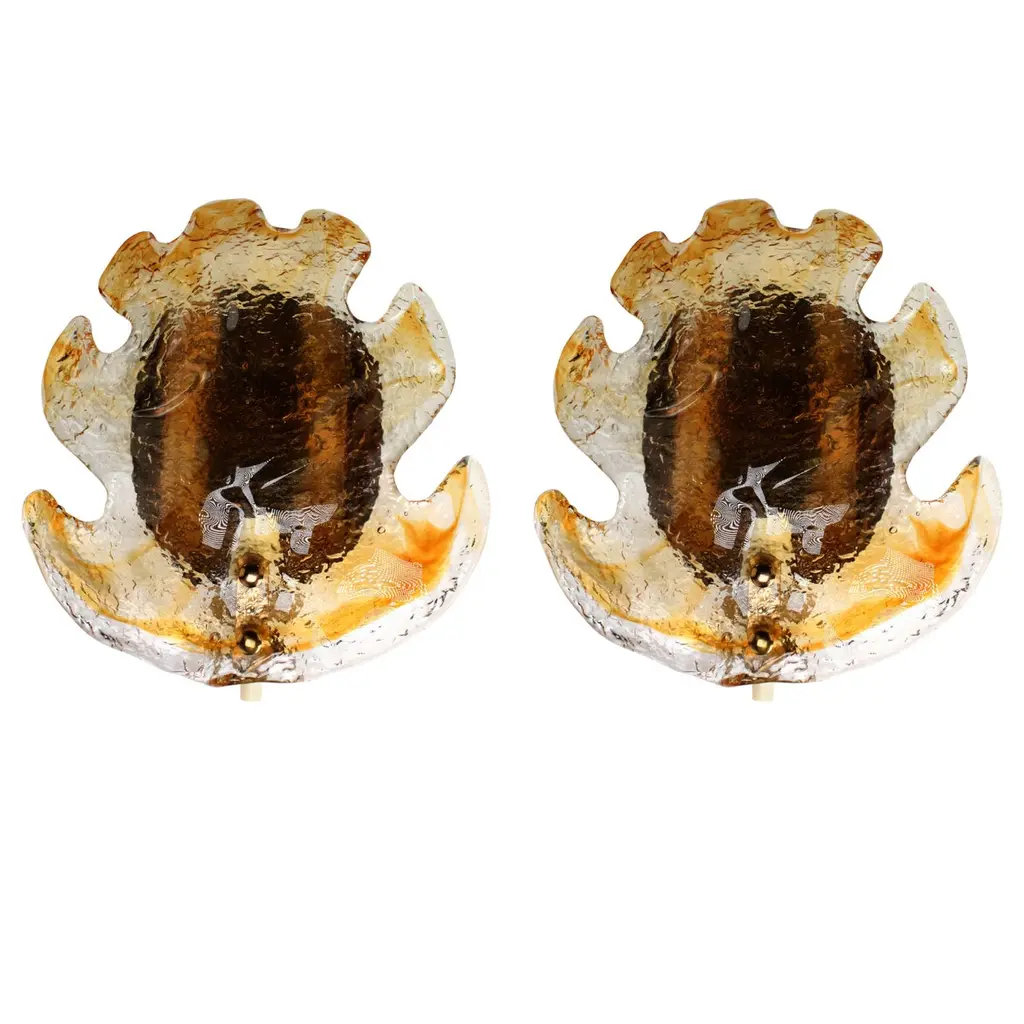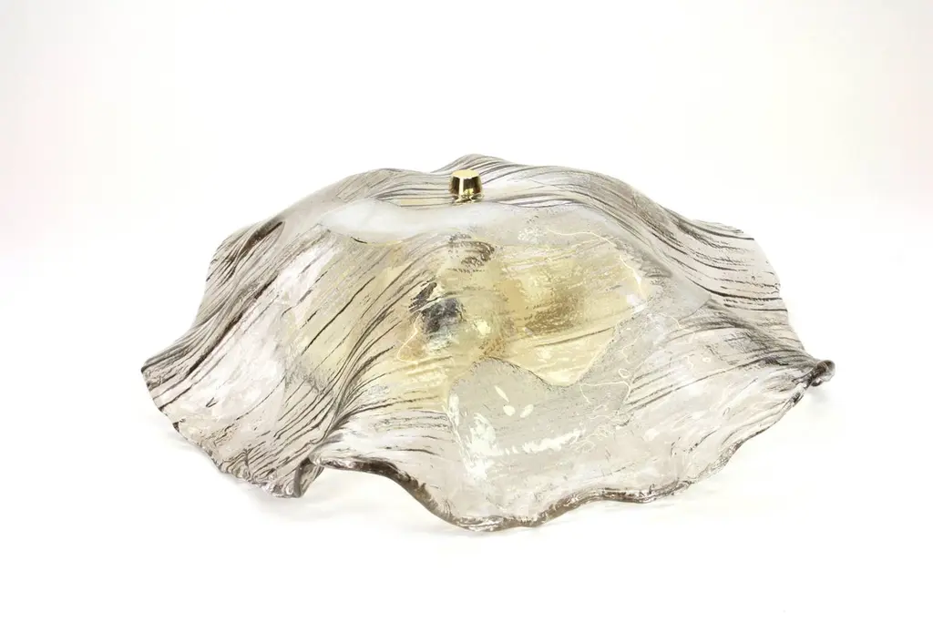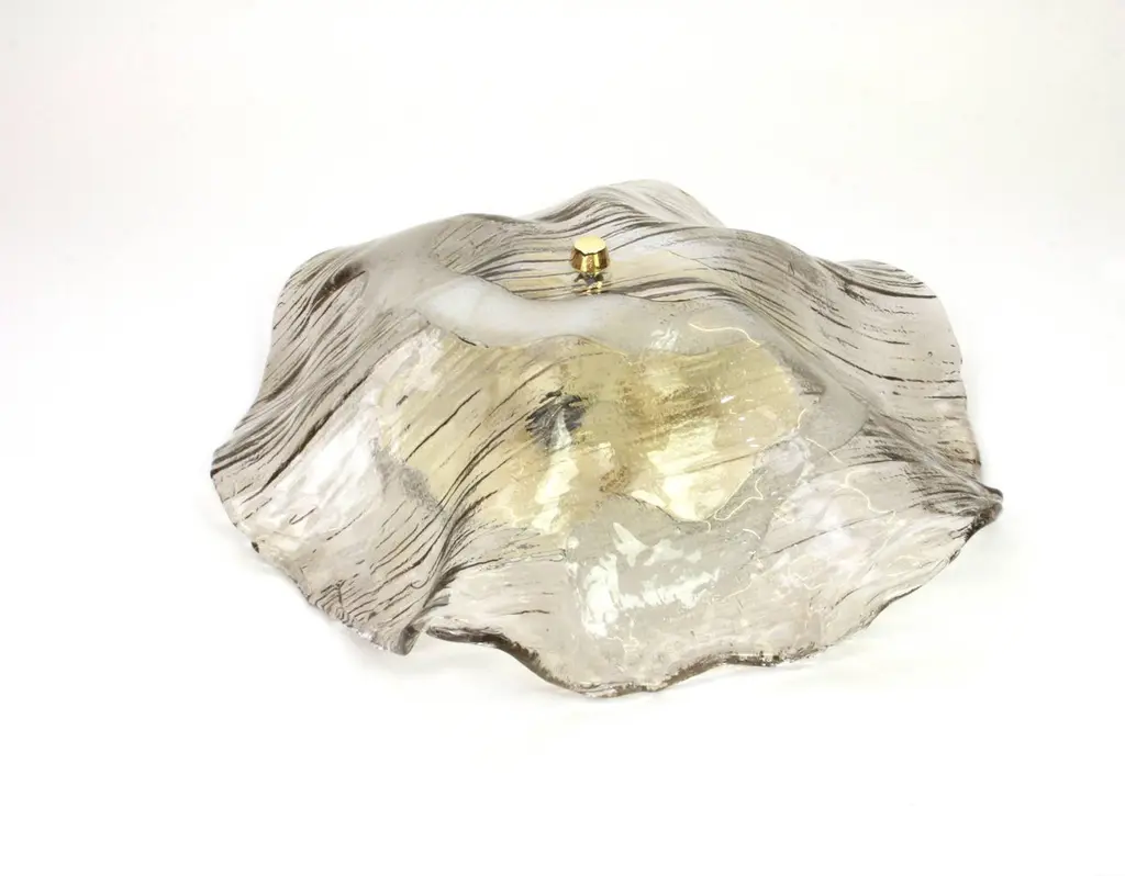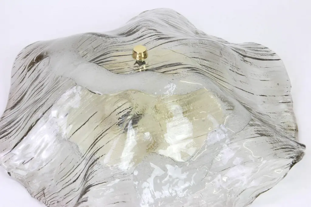 1 of 2 large flushmount lights designed by Kalmar, Austria, 1970sWonderful large organic Murano glass / bi-colored clear and amber/smoked.High quality and in very good condition. Cleaned, well-wired and ready to use. Each fixture requires 3 standard bulbs Light bulbs are not included. It is possible to install this fixture in all countries (US, UK, Europe, Asia, Australia,..)The listed price is per item.