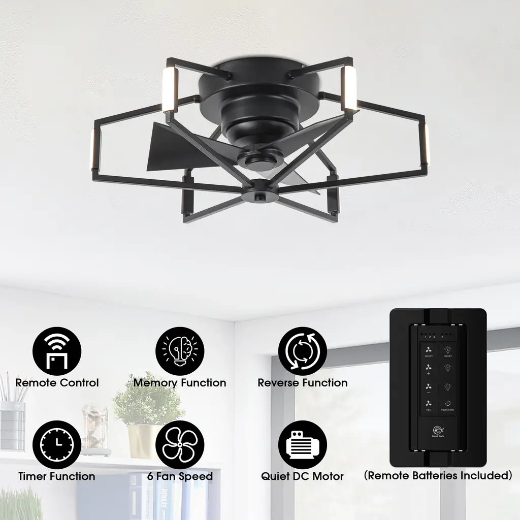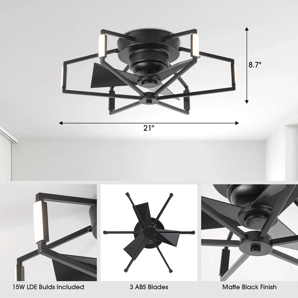 21 Inch Wade Black Industrial Flush Mount Led Ceiling Fan - Black
