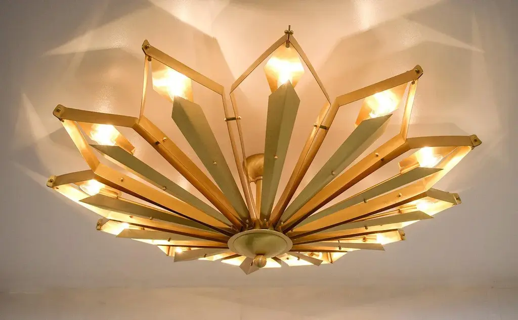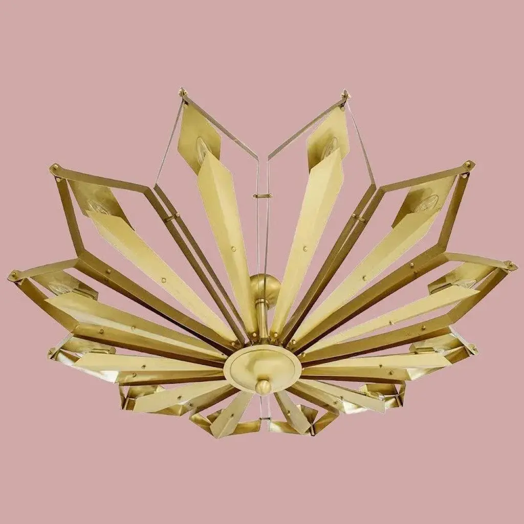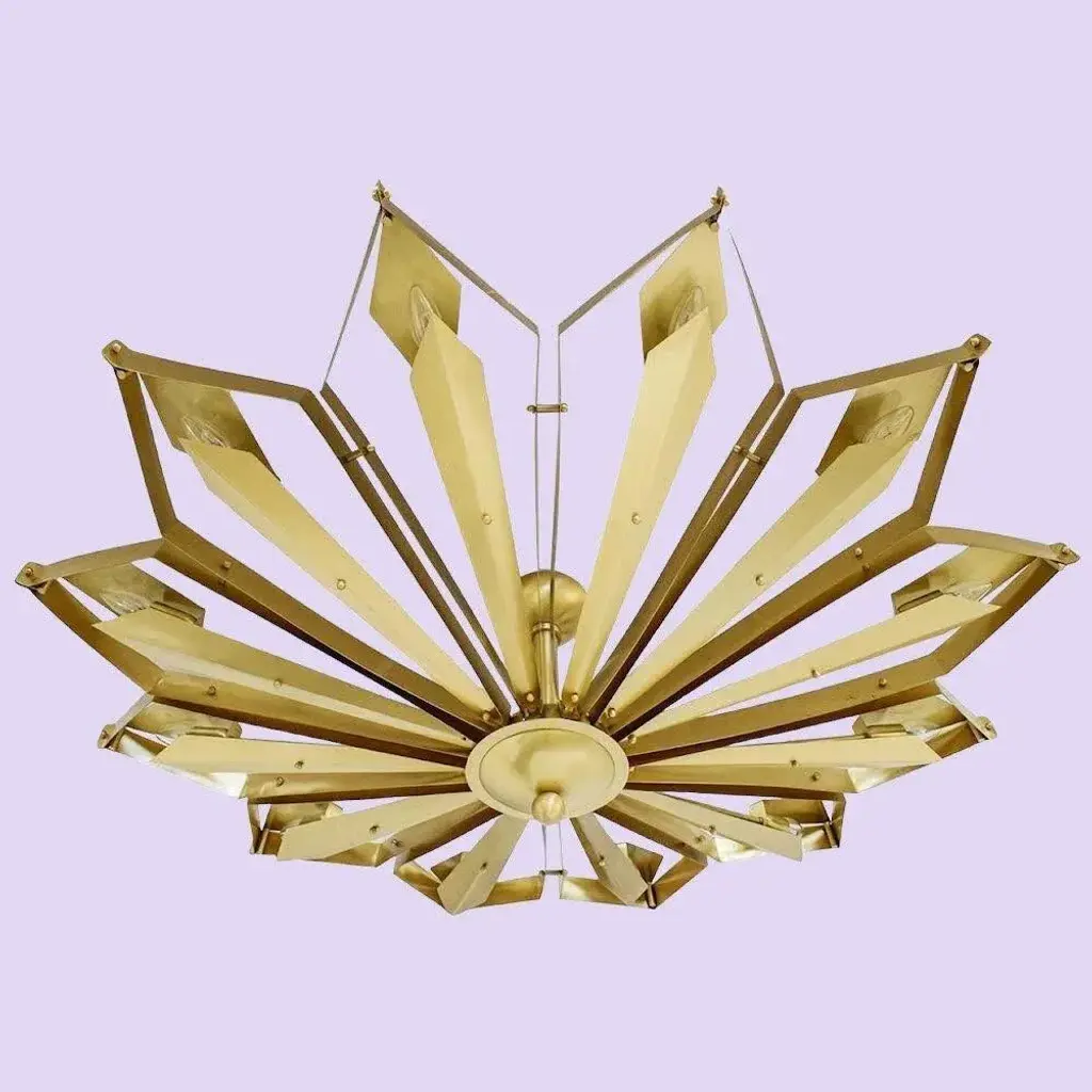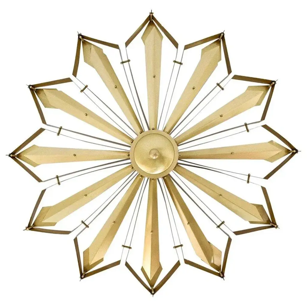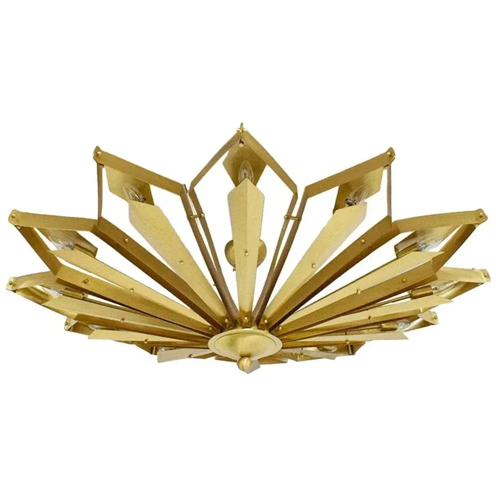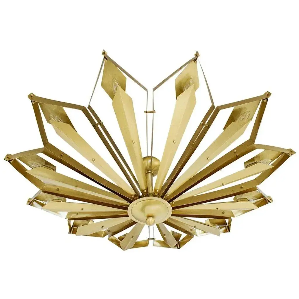 Elegant Italian flush mount with satin brass frame handcrafted to resemble a convex dahlia flower, designed by Fabio Bergomi for Fabio Ltd / Made in Italy 12 lights / E12 or E14 type / max 40W each Diameter: 51 inches / Height: 16 inches