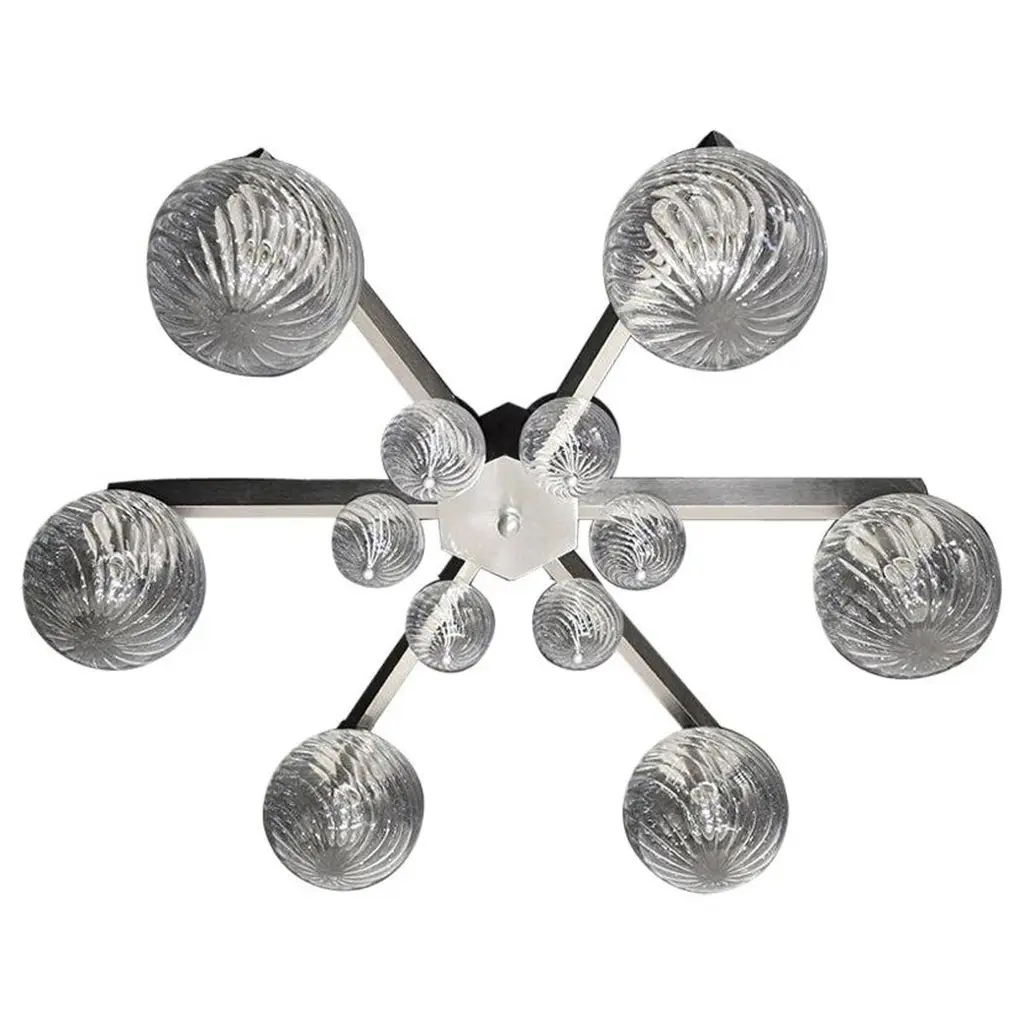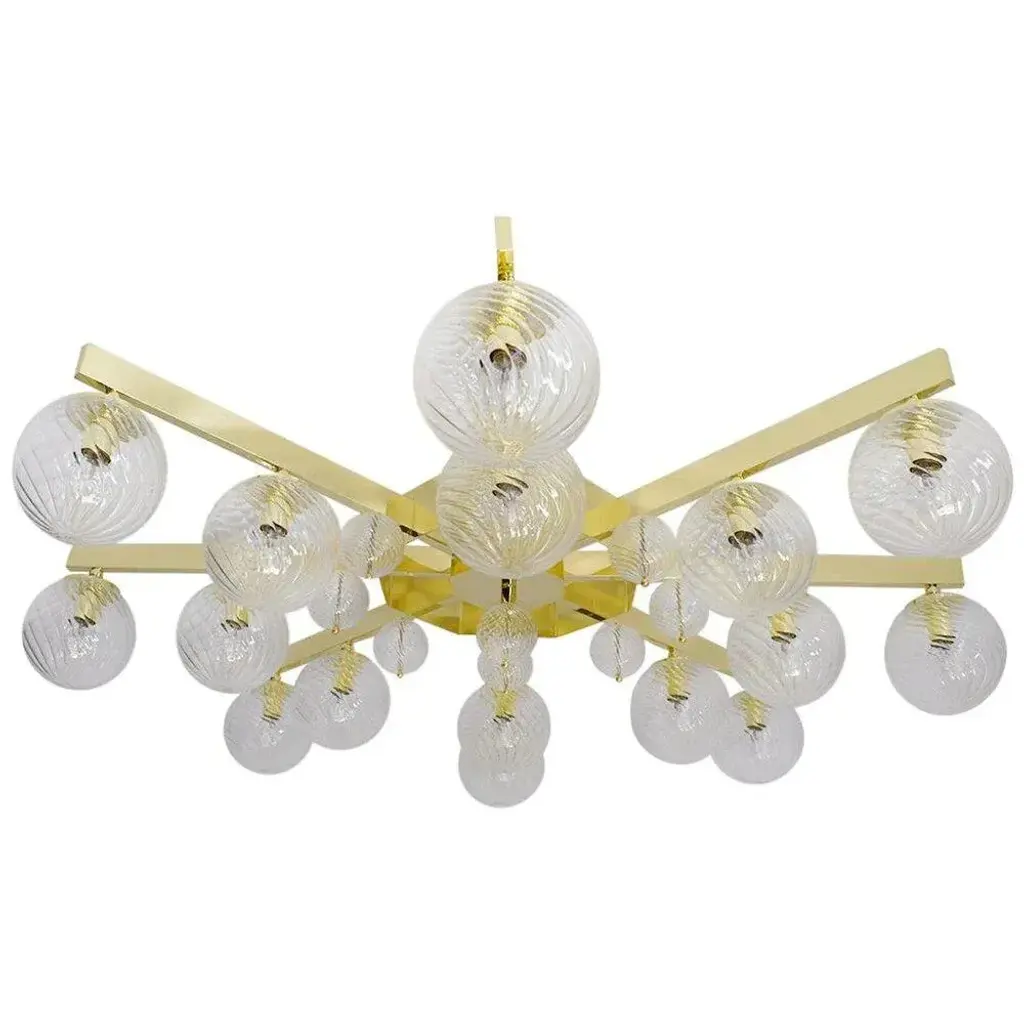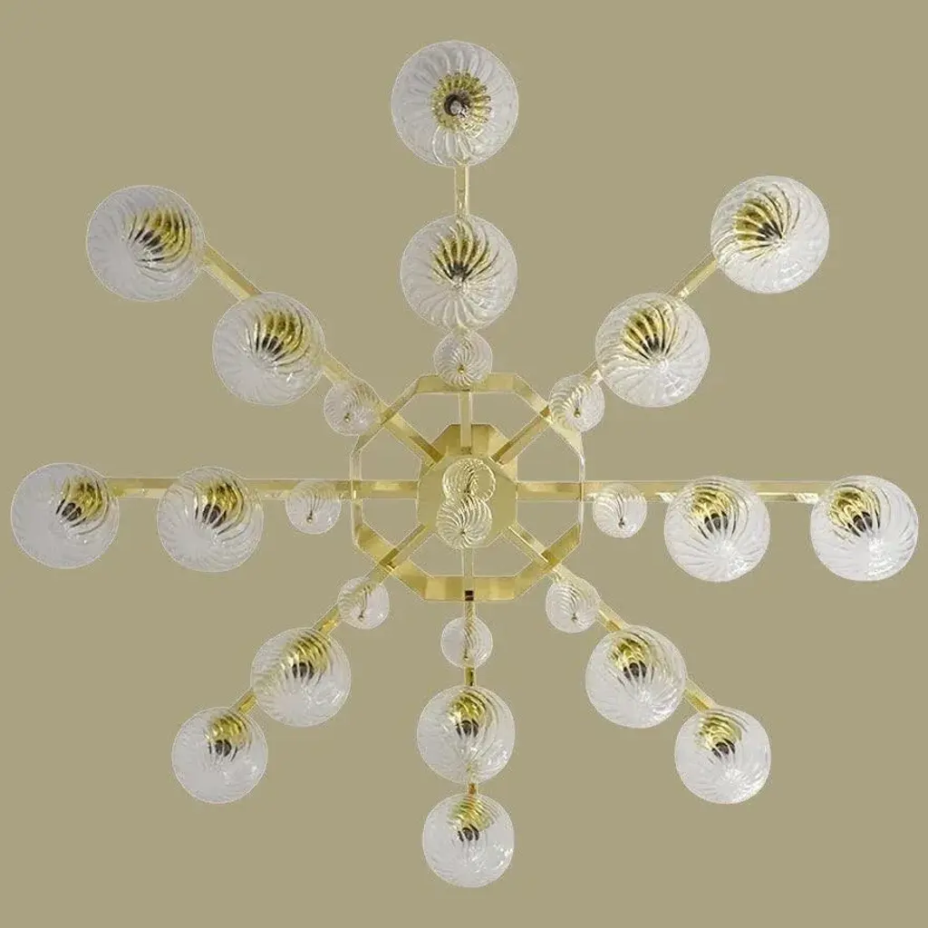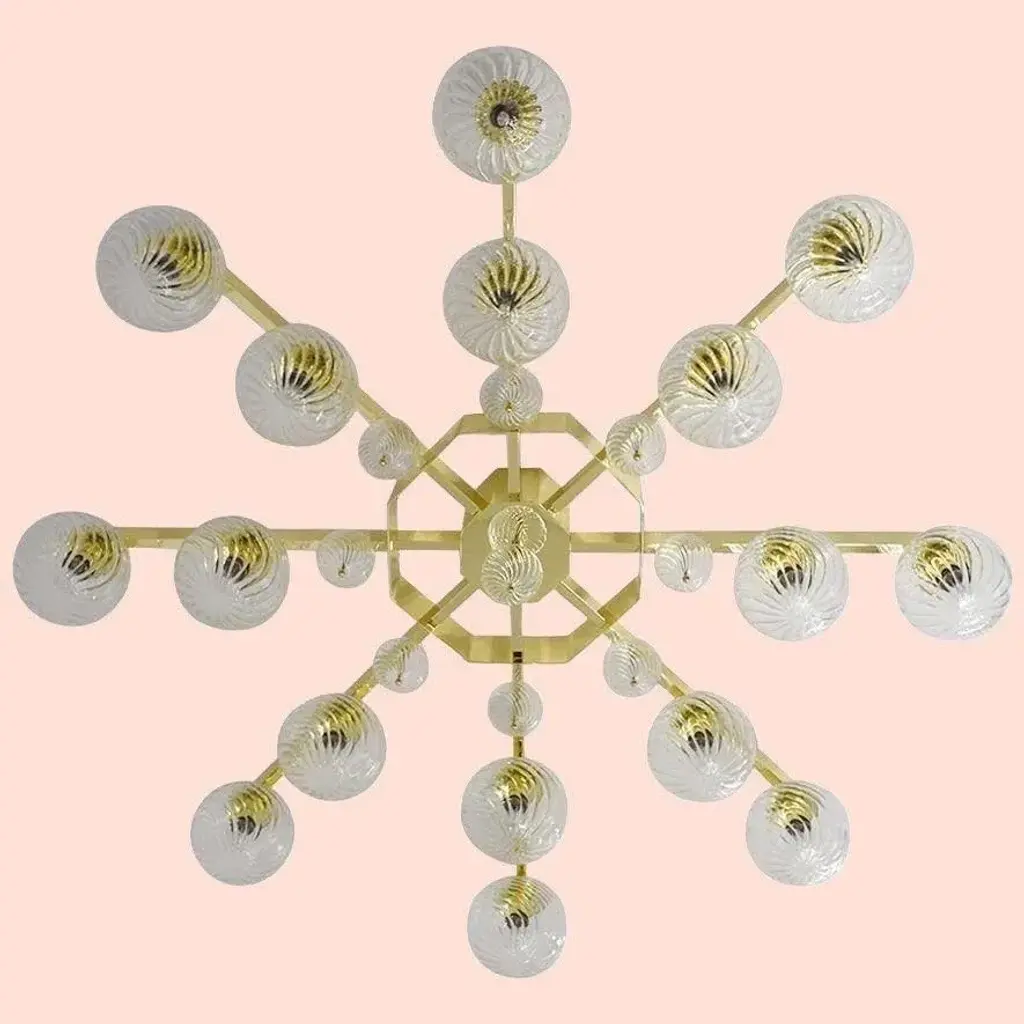 Italian modern flushmount with clear glass globes with twisted texture on 24-karat gold plated metal frame / Made in Italy Designed by Fabio Bergomi for Fabio Ltd 16 lights / E12 or E14 type / max 40W each Diameter: 51 inches / Height: 10.5 inches