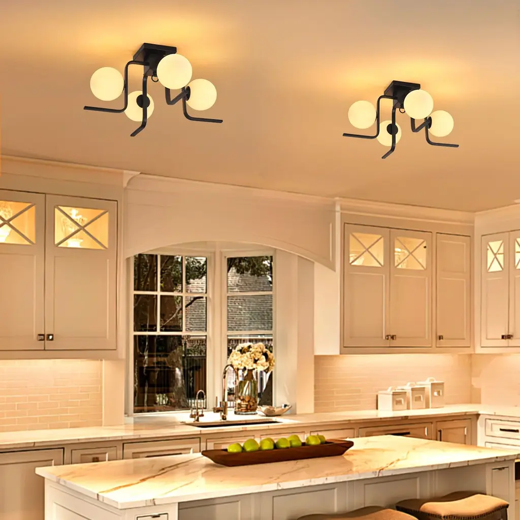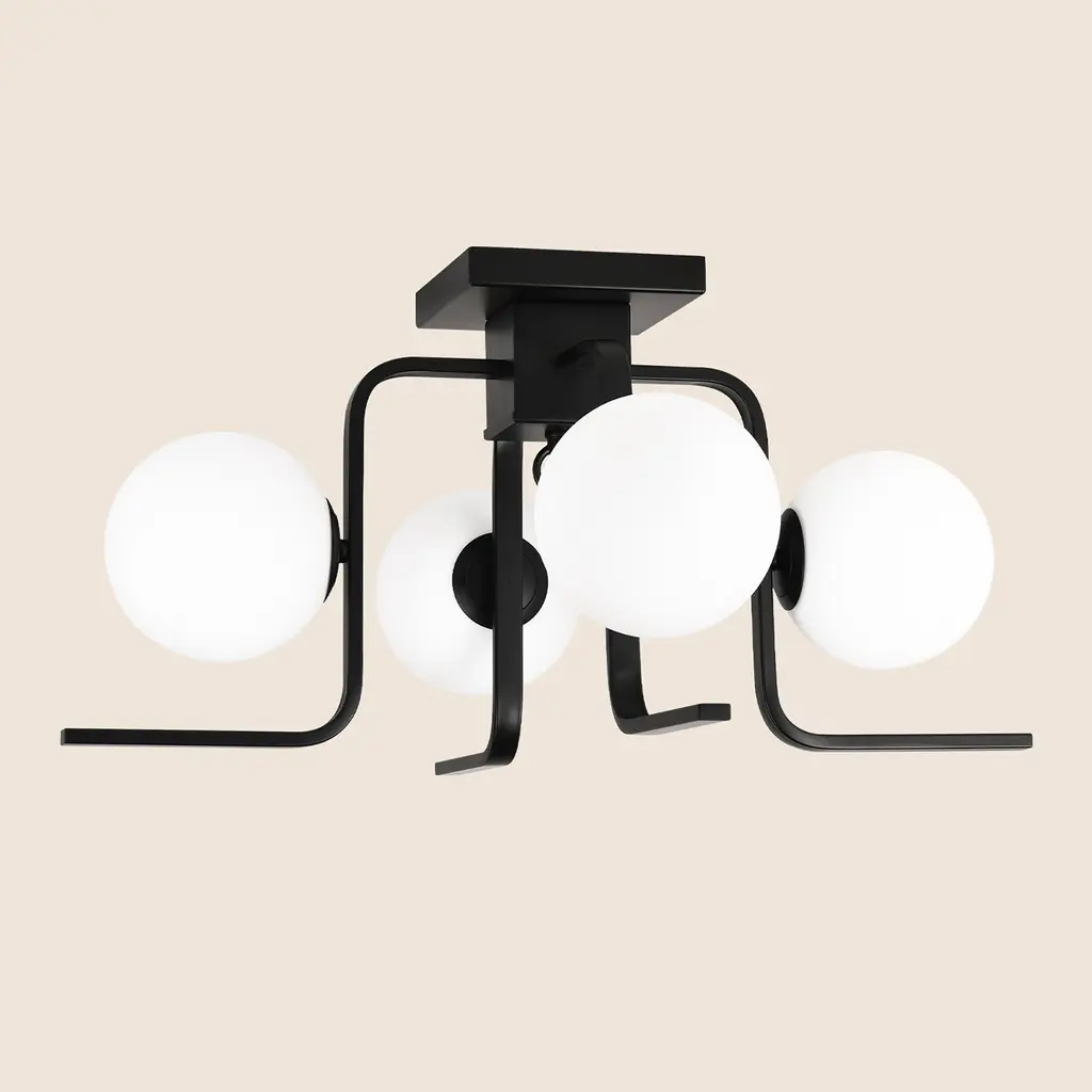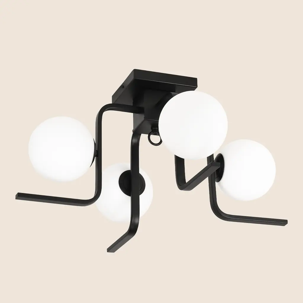 4 - Light Globe - Shaped Flush Mount Light - Matte Black - Matte Black