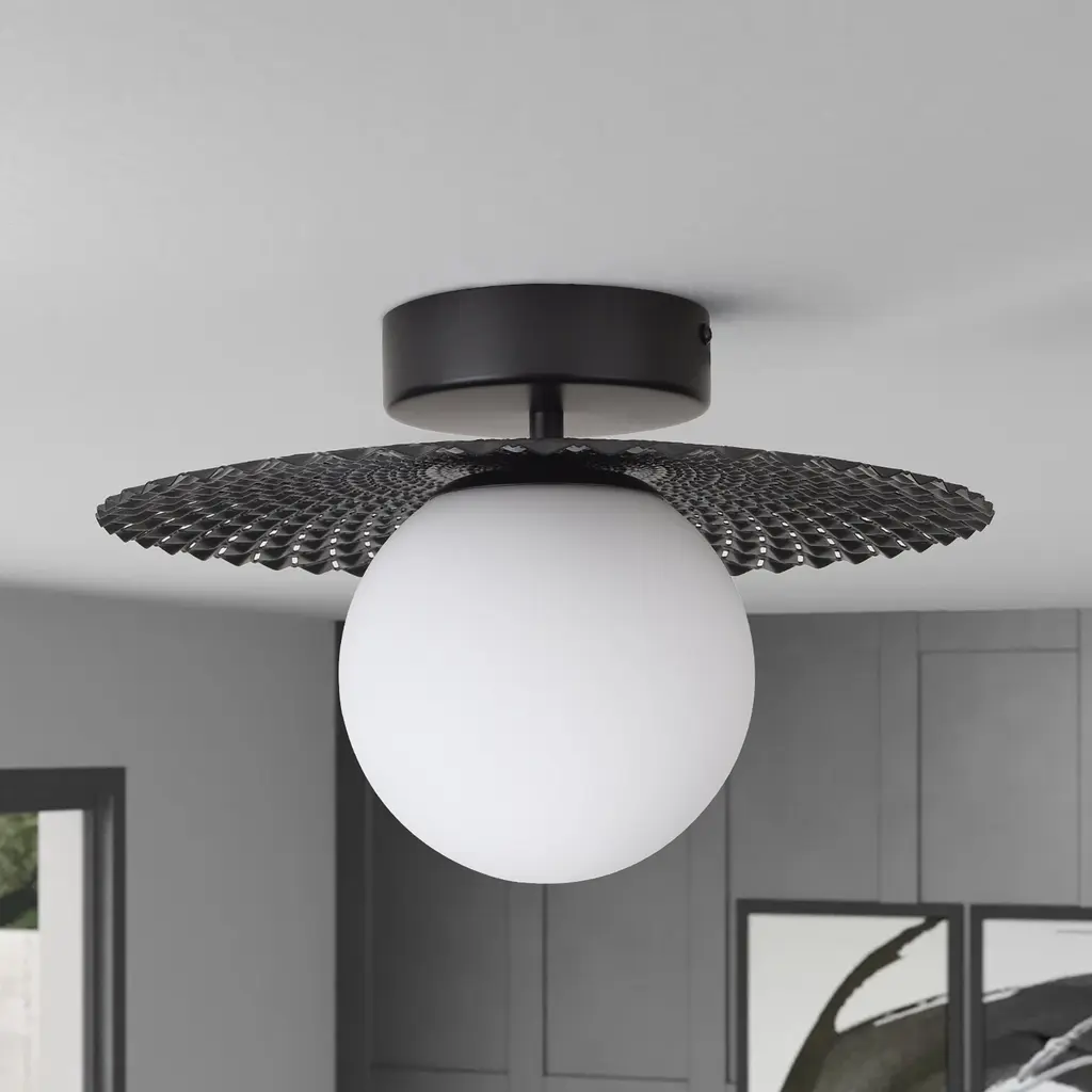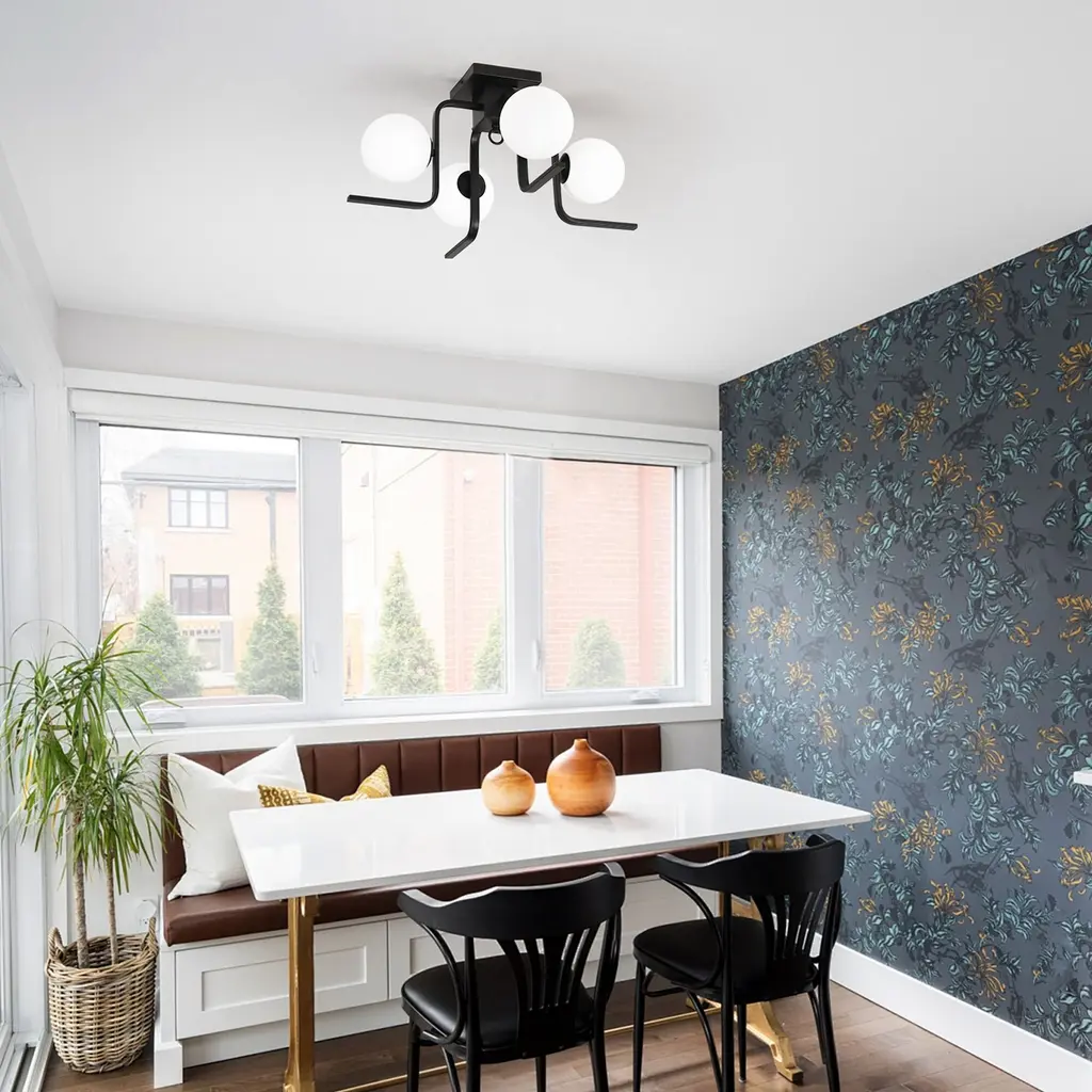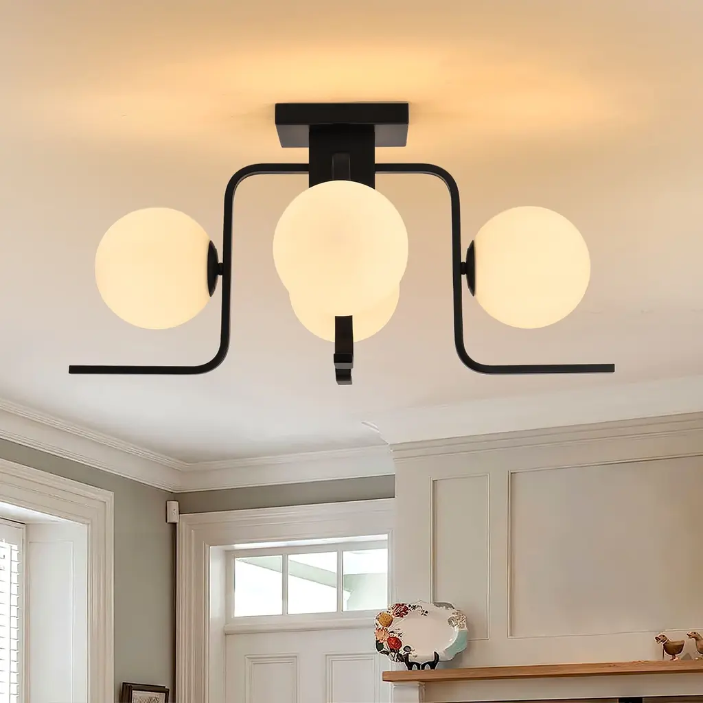 Detail:Elevate your home decor with this sleek and modern 4-Light Flush Mount Ceiling Fixture. Designed with a bold black metal frame and opal glass globes, this light exudes contemporary elegance, making it a perfect addition to living rooms, bedrooms, or dining areas. Featuring four G9 bulb sockets (bulbs not included), it ensures versatile and ample lighting. Its compact flush-mount design seamlessly integrates into various ceiling spaces while adding a stylish touch. Illuminate your space with sophistication and functionality, enhancing both ambiance and aesthetics.Feature: