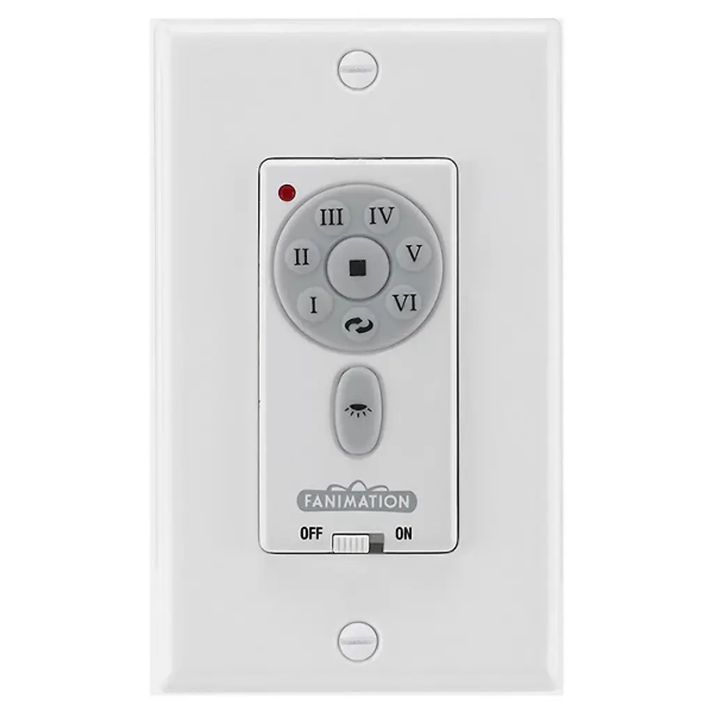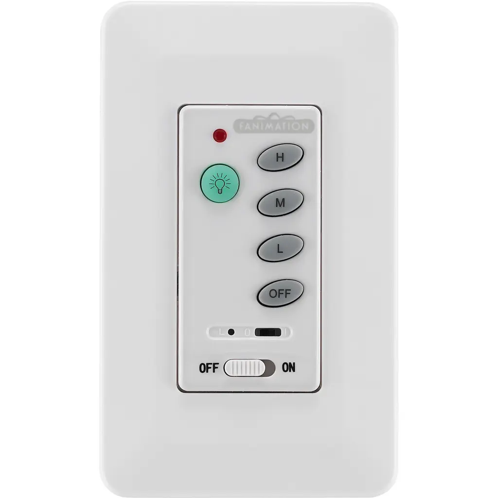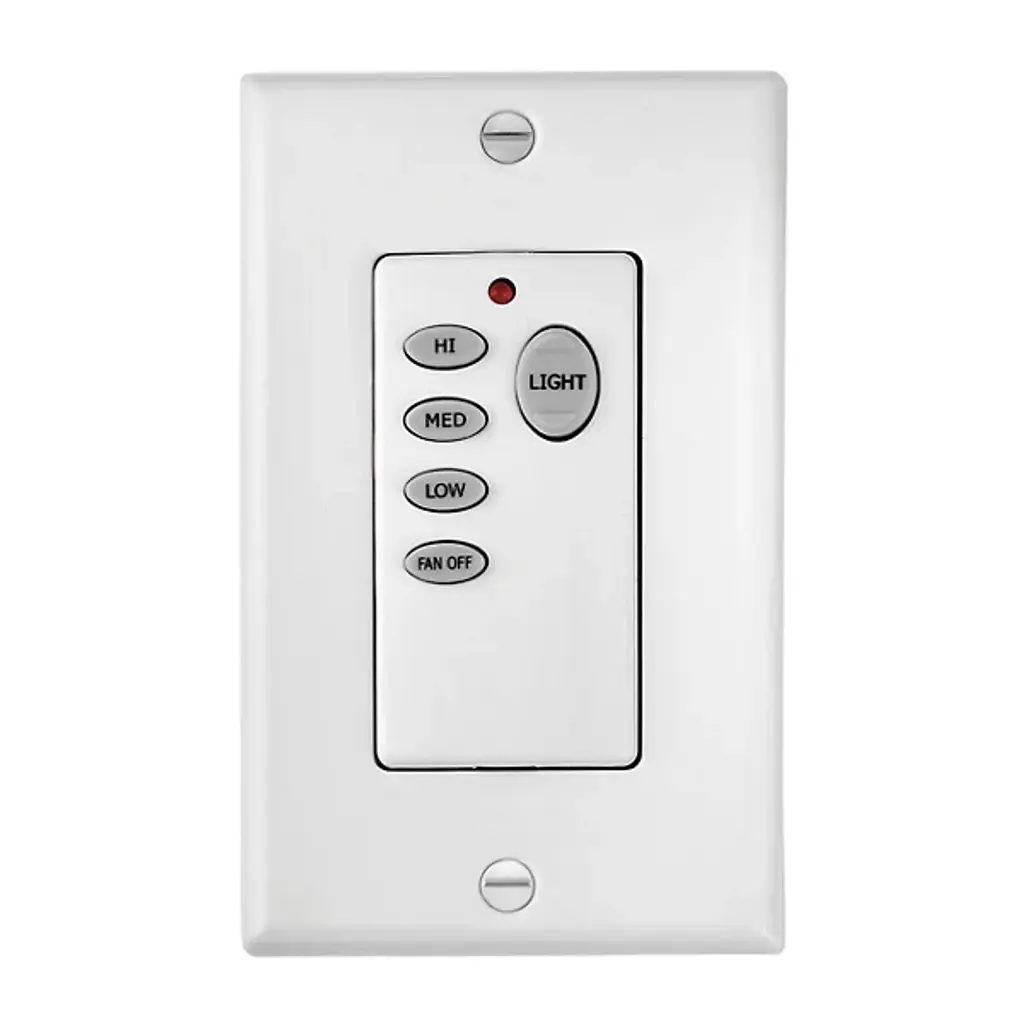 A quick button press and you’re off to a comfortable living experience with the 4-Speed Wall Control for DC Fans from Hinkley Lighting. This piece falls in place with the modern aesthetic in its rounded corners and clear symbol-based interface. It accents the wall with a flush faceplate in a neutral white finish. The piece elegantly pairs a fan and light button with a plus, minus one for the range of high and low settings. In between, a circulating button provides the upsurging reverse functionality. The piece offers quick use with an on-off switch.
