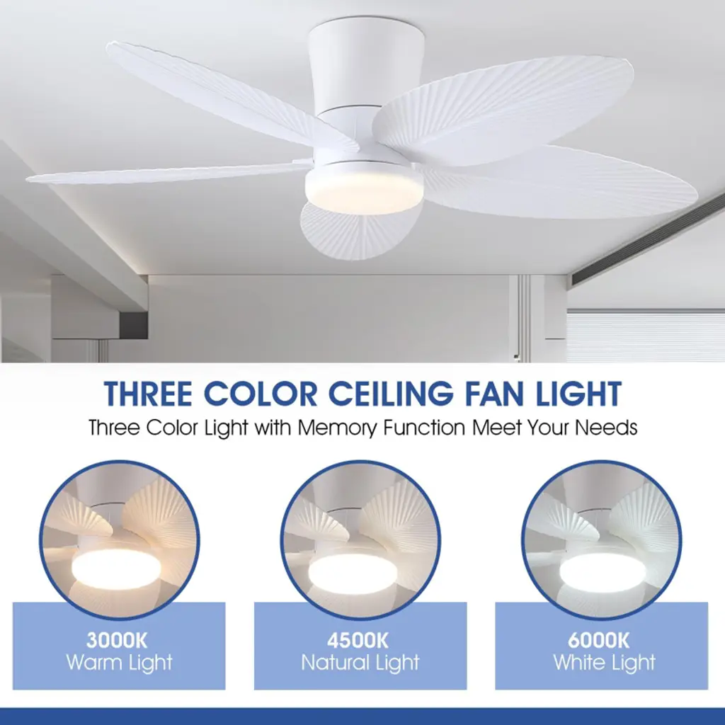 42 Inches Flush Mount Tropical Palm Leaf Ceiling Fan With Light And Remote App Control For Living Room Bedroom