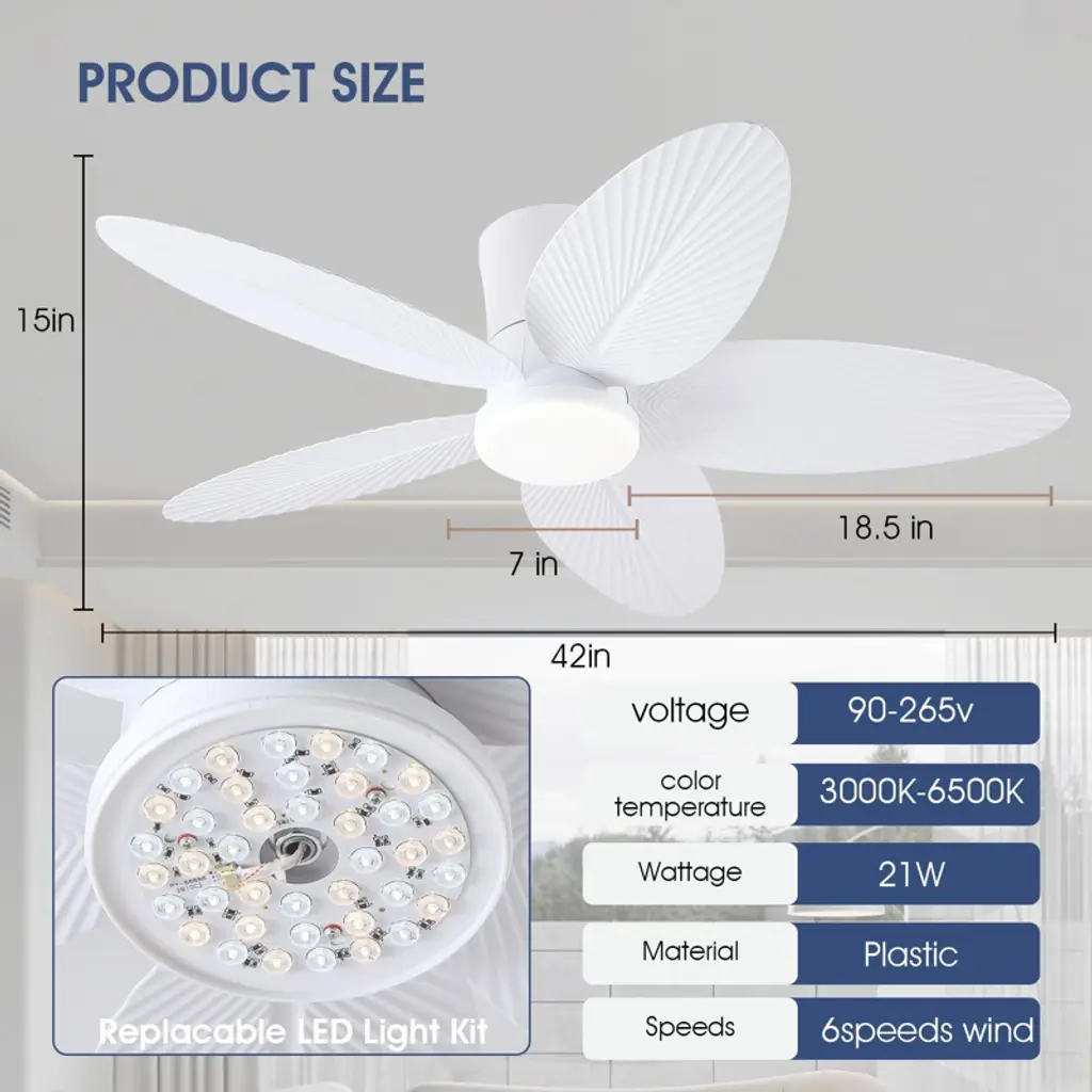 Boasting a touch of modern house appeal, this 42 inch Ceiling Fan is a great way to add comfort and style to any room. The decorative ceiling fan features a black or white finish fixture and 5 reversible dual side plywood blades. It is completed with LED integrated 3 CCT light, perfect for low ceilings. This modern design perfectly balances style to fit into industrial and modern and farmhouse decor.