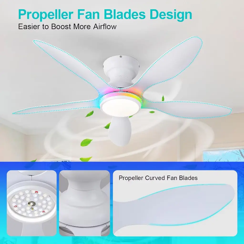46 Inches Rgb Flush Mount Ceiling Fan