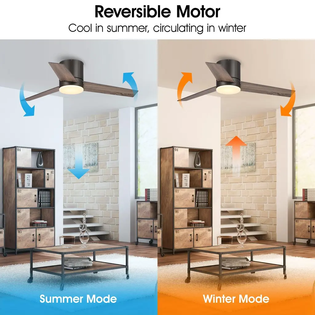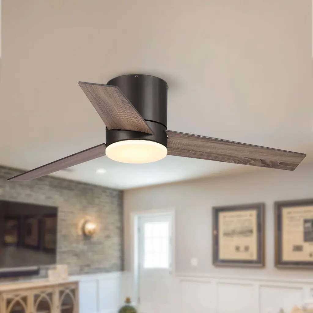 Designed to fit flush in rooms with low ceilings, this low-profile ceiling fan is perfect for small rooms with low ceiling heights. Our 3-blade ceiling fan light provides powerful air circulation and soft lighting. Its stylish look will immediately add character to your home. The ceiling fan boasts a 3-speed motor to deliver powerful, efficient airflow. You can easily control the energy-efficient LED light and fan speeds with the included handheld remote.
